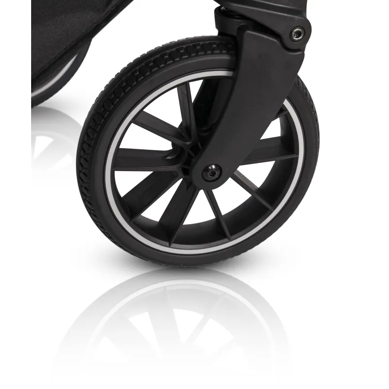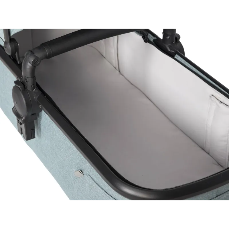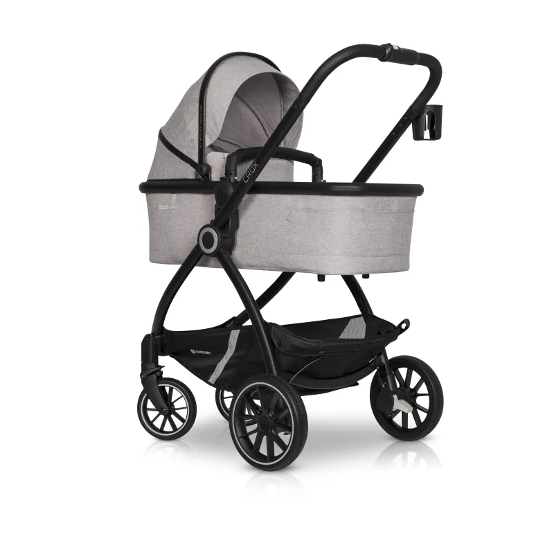 rėmas su lopšiu vaikui iki 9 kg (atitinka EN 1888-1:2018),lopšys su sulankstymo funkcija,uždangalas nuo lietaus,puodelio laikiklis,čiužinys ir paminkštinimas lopšyje,plastikinės kojelės lopšio apačioje (galima padėti ant žemės),stogelis nuo saulės su papildoma sekcija ir reguliavimu,eko oda aptraukta lopšio nešimo rankena,bekameriai ratai su guminėmis padangomis ir protektoriumi,rėmo lankstymo sistema viena ranka,rankena aptraukta eko oda,automatinis sulankstyto rėmo užraktas (palengvina sulankstyto rėmo judėjimą),rankinis stabdys,labai didelis krepšys po vežimėliu.