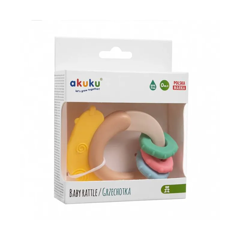 Dėl specialiai parinktos formos barškutį patogu suimti ir laikyti mažose rankose.