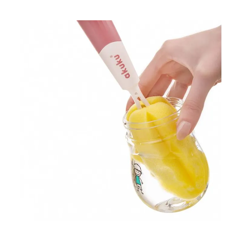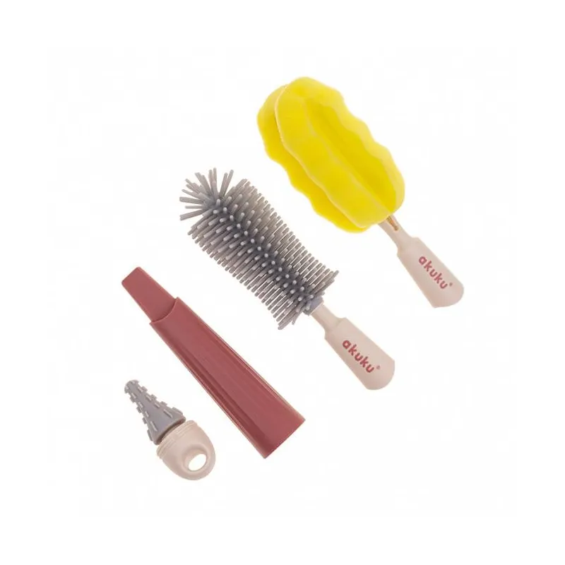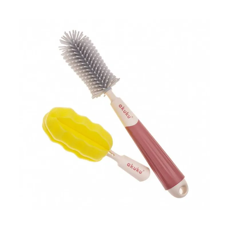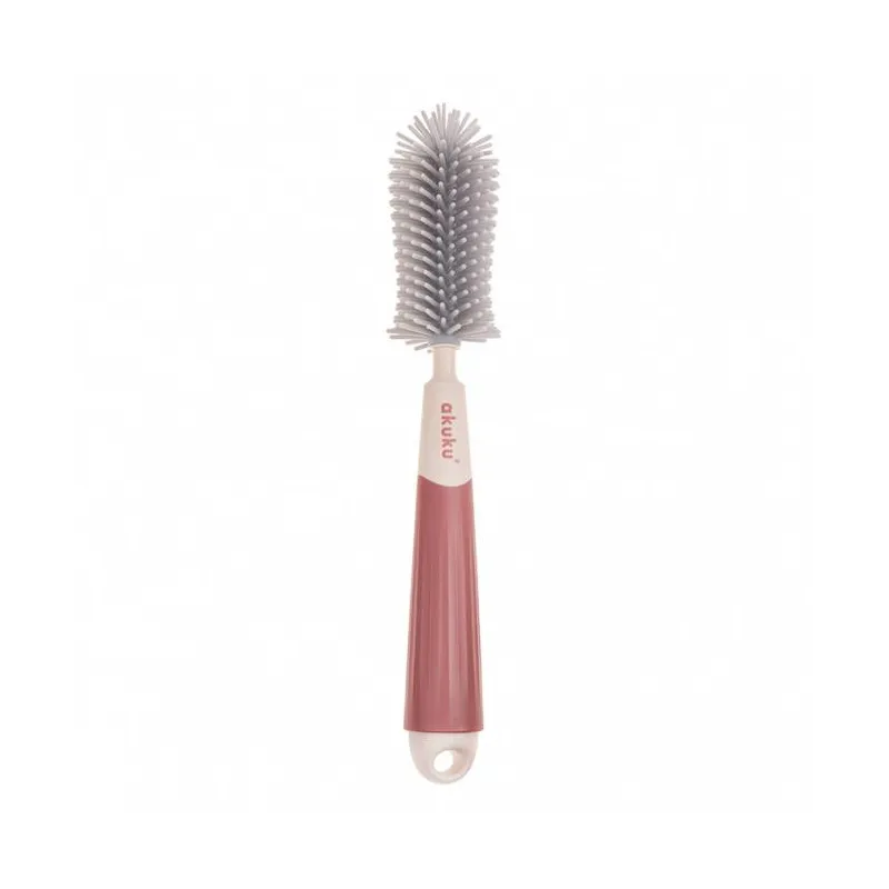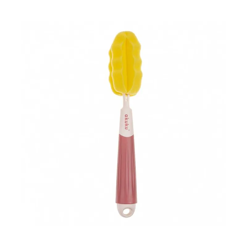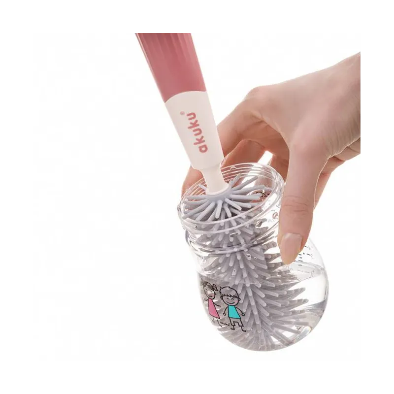 Akuku buteliukų, puodelių ir žindukų silikoninis šepetys su kempine, beige/pink, A0512