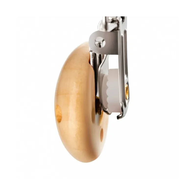 Jis turi atitinkamą užsegimą, pagamintą medinio segtuko pavidalu;