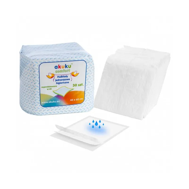 Vienkartiniai paklotai kūdikių vystymui Akuku COMFORT - puiki pagalba, keičiant kūdikio sauskelnes, juos taip pat gali naudoti moterys pogimdyminiu laikotarpiu.