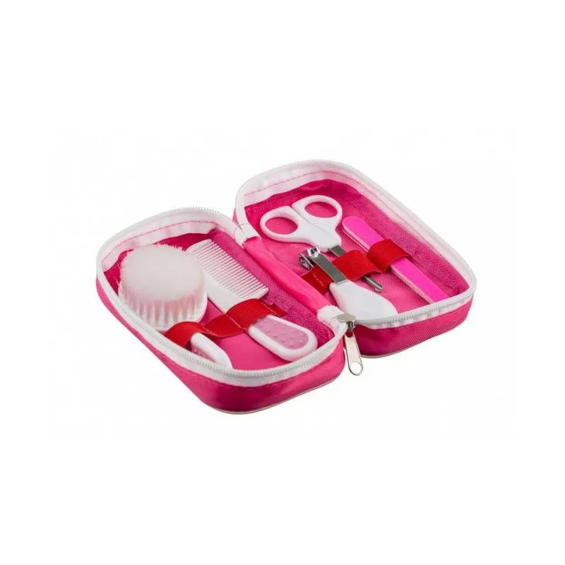 šepetys minkštais šereliais,šukos,žirklės suapvalintais galais,žnyplės,4 nagų dildės.