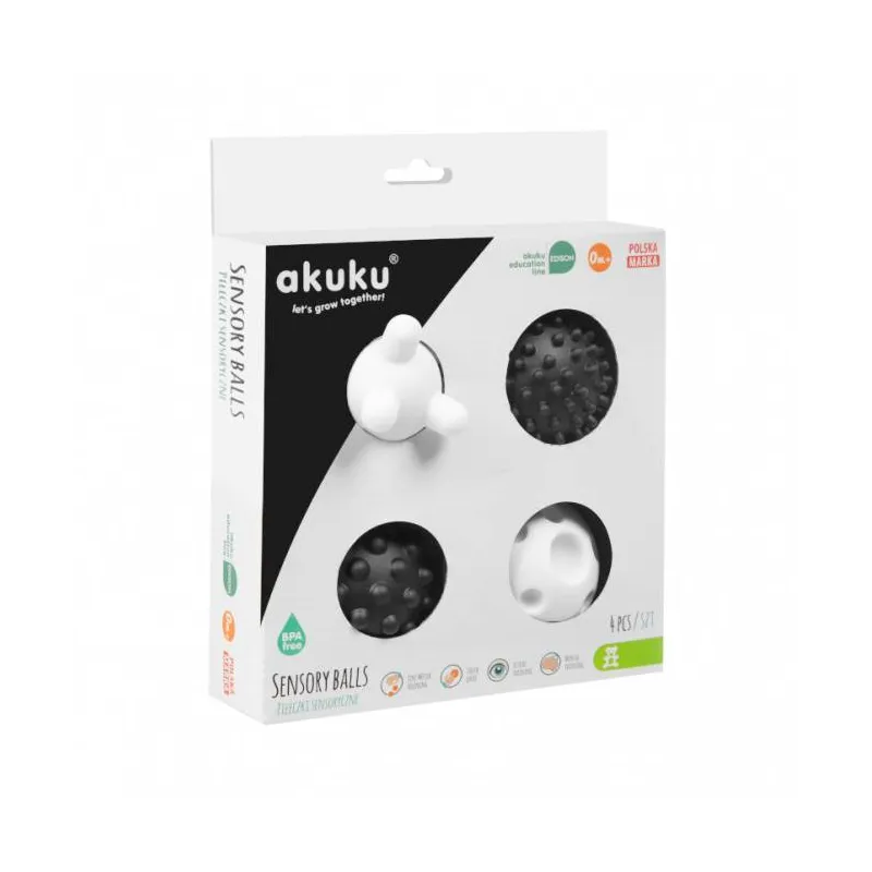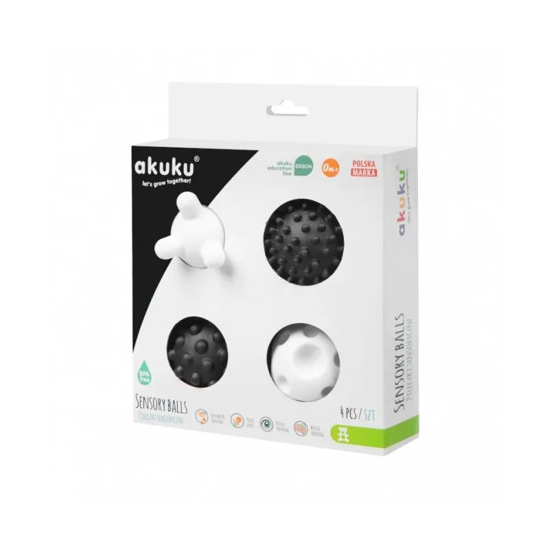 Akuku minkšti sensoriniai kamuoliukai, 4 vnt., Black/white A0469