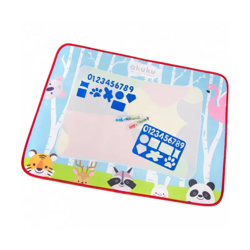 Komplete: kilimėlis, 2 vandeniu pildomi rašikliai, trafaretai.