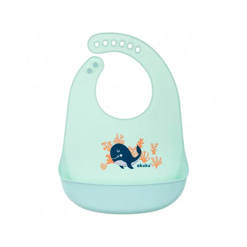 Silikoninis seilinukas Akuku Whale – praktiškas ir patogus aksesuaras, kuris labai palengvins kūdikio maitinimą tiek namuose, tiek pasivaikščiojant.