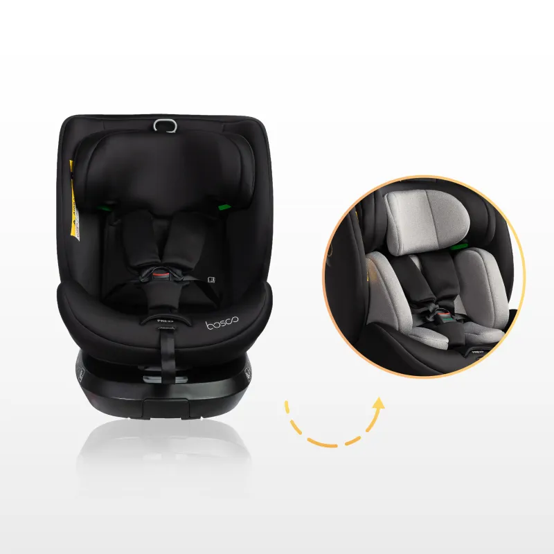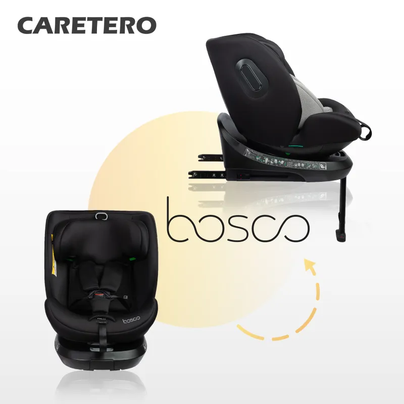 Automobilinė kėdutė pasukama 360° kampu, neatjungiant kreiptuvų.Caretero Bosco Fix i-Size automobilinė kėdutė sukurta pagal dabartinius, aukščiausius i-Size standarto nustatytus standartus.Kiekvienai sėdynės konfigūracijai buvo atlikti griežti susidūrimo bandymai – priekinio ir šoninio smūgio. Be to, atliekant susidūrimo testus buvo naudojamas aukščiausios kartos – Q tipo manekenas, kuris garantuoja tikslius matavimus.Galvos atrama priglunda prie vaiko galvos, užtikrindama šios kūno dalies, kuri yra labiausiai apsaugota nuo traumų, saugumą.Pažangi šoninė apsauga ir plieniniai komponentai – Apsaugą šoninio smūgio metu užtikrina papildomi elementai šoninėje sėdynės konstrukcijoje ir šonuose, sutvirtinti EPS polistirenu, sugeriantys jėgą smūgio metu.Pačios kėdės konstrukcija sutvirtinta plieniniais elementais, o tai padidina visumos konstrukcinį vientisumą.Platus aukščio diapazonas – nuo 40 iki 150 cm – tai universalus pasirinkimas, kuris jums tarnaus ilgus metus.Patvarus ir greitas automobilinės kėdutės montavimas į automobilį su ISOFIX sistema ir stabilizuojančia kojele, kuri tolygiai paskirsto svorį, staigaus stabdymo metu. Dėl kojelės, sėdynė lengvai pasukama į skirtingas puses.Kėdutė montuojamas prieš važiavimo kryptį iki 105 cm.Patvarūs diržai užtikrina maksimalų vaiko saugumą. Papildomi paminkštinimai nedirgina vaiko odos, o neslidžios pagalvėlės užtikrina teisingą diržų padėtį.Sutvirtinta konstrukcija bei didelės šoninės plokštės užtikrina aukštą apsaugos lygį esant kelio eismo įvykio metu.15 pakopų galvos atramos reguliavimas užtikrina, kad kėdutė auga kartu su jūsų mažyliu.Galvos atlošo reguliacija integruota su saugos diržais.Nugaros atlošas reguliuojamas 5 padėtyse.Rinkinyje pridedamas specialus juosmens įdėklas, kuris užtikrina vaiko tinkamą stuburo padėtį.