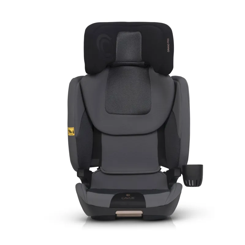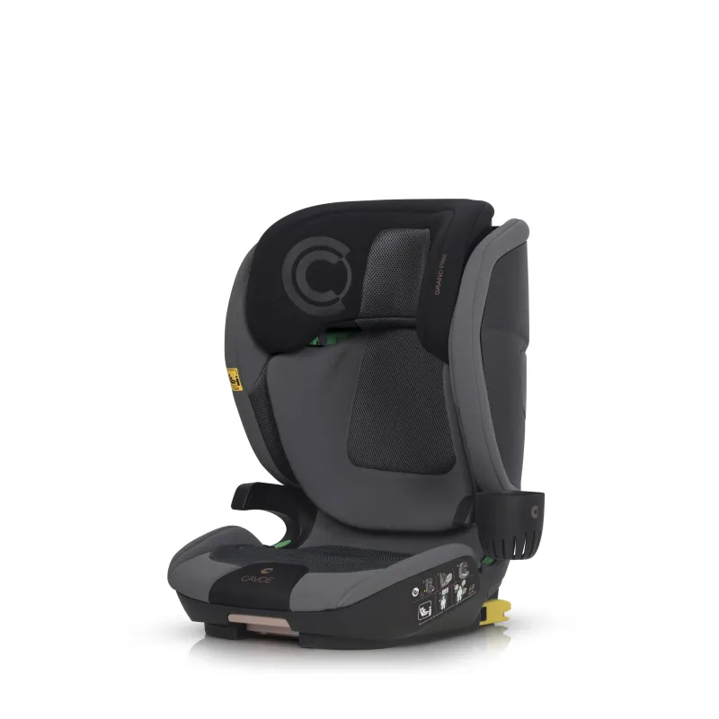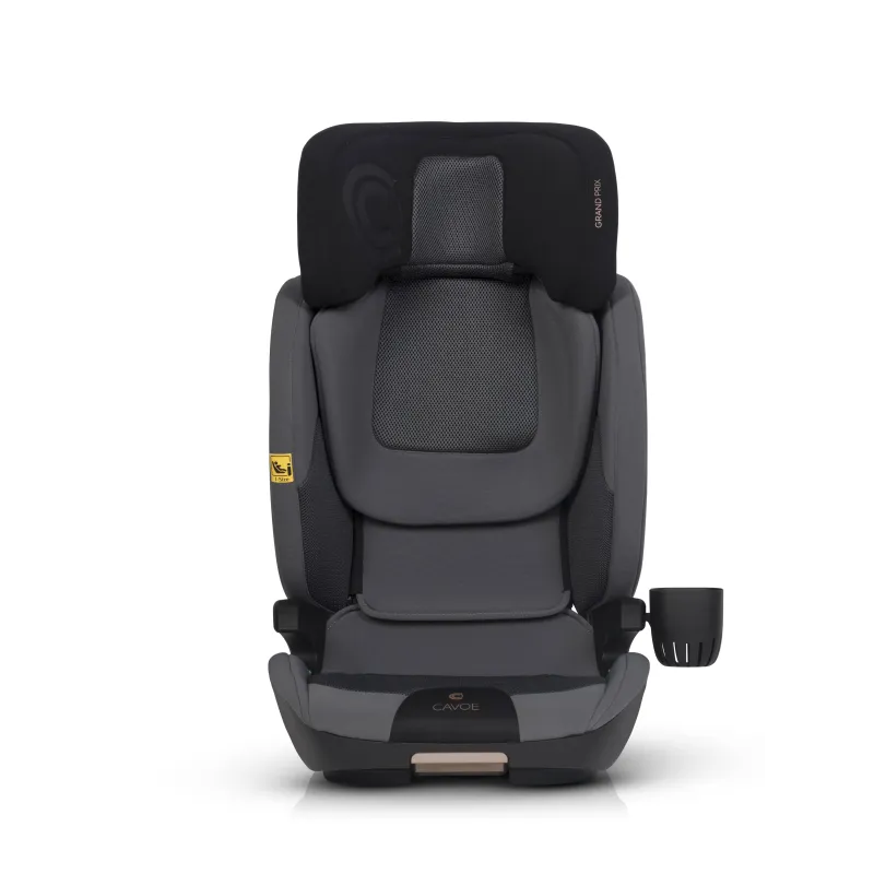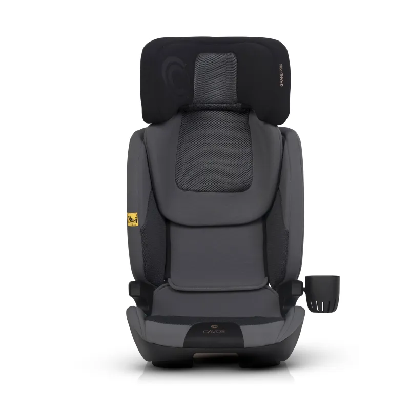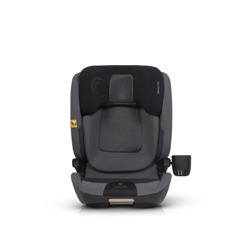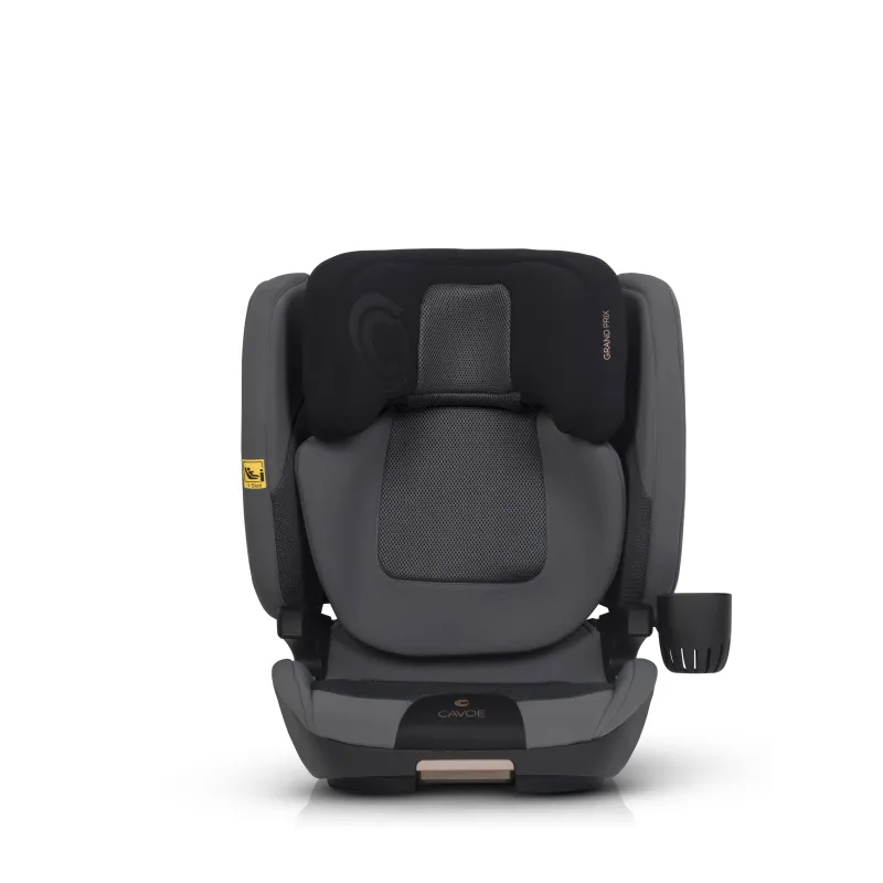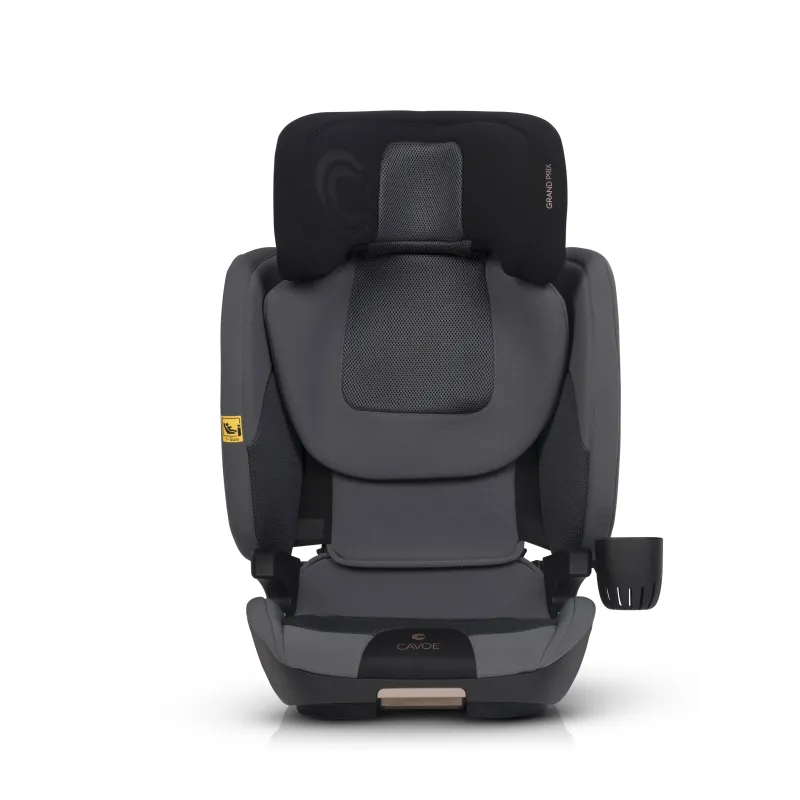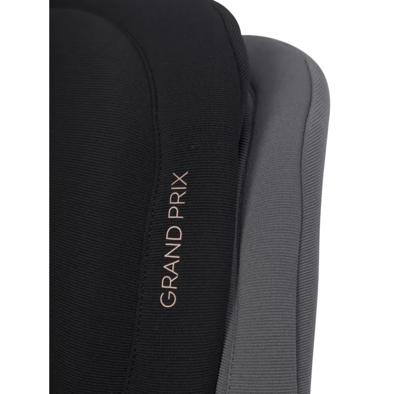 I-SIZE patvirtinimas vaikams nuo 100 iki 150 cm ūgio,ISOFIX tvirtinimo sistema (lengva montuoti, didesnis stabilumas ir saugumas),miegojimo funkcija (4 pakopų sėdynės pasvirimo reguliavimas),reguliuojamas atlošo plotis (nuo 42 iki 55 cm),reguliuojamas atlošo aukštis (nuo 53 iki 75 cm),energiją sugeriančios Memory Foam galvos atramos,didelio plastiko poliuretano putos ant sėdynės,Papildomas privalumas – praktiškas puodelių laikiklis, kuris gali būti tvirtinamas abiejose sėdynės pusėse, priklausomai nuo to, kur automobilyje sėdynė sumontuota.Automobilinės kėdutės GRAND PRIX apmušalai pagaminti iš dviejų skirtingų audinių. Pagrindinis audinys yra storas ir atsparus dėvėjimuisi, kuris užtikrina jo ilgaamžiškumą. Jis buvo naudojamas visose vietose, kuriose sėdynės surinkimo ir naudojimo metu buvo mechaninių pažeidimų. Antro tipo audiniai – specializuotas vėdinamas 3D audinys (vadinamasis korinis), užtikrinantis tinkamą oro cirkuliaciją ir neįkaistantis kaip tradiciniai baldiniai audiniai. Jis buvo naudojamas anatomiškai pritaikytose prie vaiko kūno vietose: ant sėdynės, atlošo ir galvos atramos.Sėdynė padengta specialia, itin elastinga, didelio tankio poliuretano putomis. Tos pačios rūšies putplastis naudojamas, pavyzdžiui, ant dviračių balnelių. Jo privalumas – nesulipimo efektas, kuris išlaiko savo savybes ilgiau nei standartinės apmušalų putos.