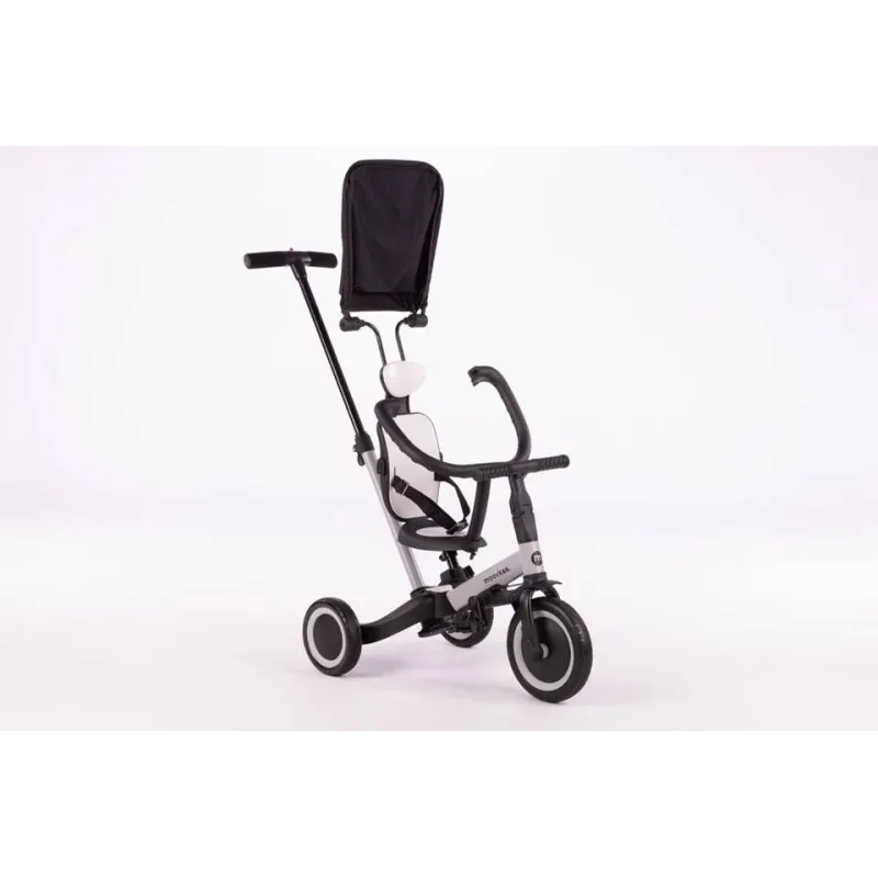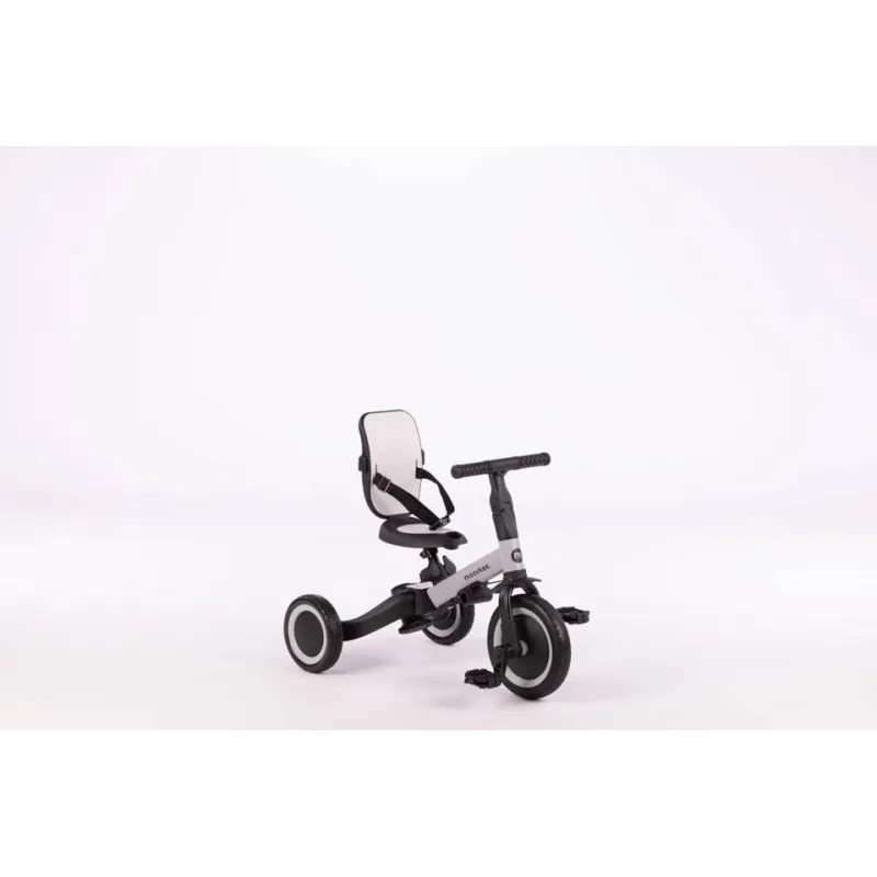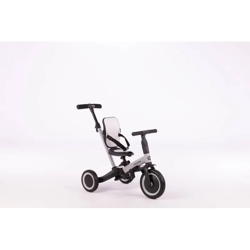 Dėl itin paprastos, patentuotos dviračio funkcijų keitimo sistemos, Mike pro galima naudoti 6 skirtingais būdais, priklausomai nuo vaiko amžiaus ir įgūdžių;Jis skirtas vaikams nuo 1 iki 5 metų;Dėl šio naujoviško sprendimo dviratis auga kartu su vaiku, todėl jam lengviau išmokti važiuoti dviračiu.Aukštos kokybės guminių padangų dėka dviratis puikiai sukimba su paviršiumi tiek kaip triratis, tiek dviratis.Jungiantis kelias transporto priemones į vieną:1. Vežimėlis – vaikams nuo 1 iki 2 metų. Šioje konfigūracijoje triratukas pakeičia vežimėlį. Kėdutė turi atlošą su saugos diržais ir žiedą, apsaugantį vaiką. Triratuko gale yra stumimo rankena su 3 pakopų aukščio reguliavimu, kurio dėka tėvai gali patogiai stumti ir manevruoti triratuką. Per šį laiką vaiko kojos patogiai remiasi į pedalus, sumontuotus po dviračio rėmu, suformuodamos atramą kojoms.2. Pasivažinėjimas trimis ratais – vaikams nuo 1 iki 2 metų. Šioje konfigūracijoje yra nuimti pedalai, atlošas, apsauginis žiedas ir stumimo rankena, o galiniai ratai yra nutolę vienas nuo kito. Kūdikis patogiai įsitaiso ant žemos kėdutės ir lėtai stumiasi kojytėmis.3. Triratis – vaikams nuo 2 iki 3 metų. Šioje konfigūracijoje triratyje sumontuoti pedalai, o galiniai ratai išdėstyti vienas nuo kito. Atlošas, apsauginis žiedas ir stumimo rankena yra išmontuoti. Sėdynę reguliuojame pagal vaiko ūgį, kad jis lengvai pasiektų pedalus šiek tiek sulenktomis kojomis. Triratis yra saugus ir moko, kaip sklandžiai minti pedalus.4. Balansinis dviratis – 3-4 metų vaikams. Dėl naujos patentuotos sistemos, paspaudę vos 3 mygtukus ir neišardydami jokių elementų, triratį galite paversti praktišku mokomuoju balansiniu dviračiu. Tiesiog sujunkite galinius ratus į vieną stabilų dvigubą ratą ir nuimkite pedalus. Pedalus galima nuimti paspaudus tik vieną mygtuką ir nereikia jokių įrankių. Balansinis dviratis laikomas geriausiu būdu išmokti važiuoti dviračiu. Jūsų vaikas greitai išmoks išlaikyti pusiausvyrą ir perėjimas prie įprasto dviračio bus tik formalumas. Šioje konfigūracijoje pedalai, atlošas ir stumimo rankena pašalinami.5. Dviratis su stumimo rankena – vaikams nuo 4 iki 5 metų. Kai vaikas mokosi pats važiuoti dviračiu, svarbu, kad tėvai turėtų galimybę apsaugoti jį. Dviračio gale sumontuotos stumimo rankenos dėka tėvai gali laikyti dviratį vertikalioje padėtyje, kai vaikas praranda pusiausvyrą. Šioje konfigūracijoje pedalai montuojami ant priekinio rato, galiniai ratai sujungti, o sėdynė ir vairas priderinamas prie vaiko ūgio. Tai paskutinis mokymosi vairuoti etapas.6. Dviratis – vaikams nuo 4 iki 5 metų. Įvaldęs balansavimą ant balansinio dviračio ir dviračio su stumimo rankena, jis gali savarankiškai važiuoti stebimas tėvų. Šioje konfigūracijoje pedalai tvirtinami prie priekinio rato, o sėdynė ir vairas reguliuojasi pagal vaiko ūgį, taip sukuriamas pedalais varomas dviratis. Dėl šios funkcijos TREMIX UP gali būti jūsų vaiko mėgstamiausias žaislas ilgą laiką.Paprastas surinkimas ir išrinkimas;Grublėti, neslystantys pedalai;Patogus ir neslystantis vairas;Dviem padėtim reguliuojamas vairas;Reguliuojamas sėdynės aukštis;Guminiai, tyliai riedantys ratukai;Pedalai nuimami vieno mygtuko paspaudimu;Nuimti pedalai prisitvirtina po sėdyne, ant rėmo;Patogus transportavimas:Europos standartas: EN71