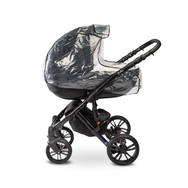 Lietaus uždangalas apsaugo vežimėlį ir vaiką nuo nepalankių oro sąlygų;Pagamintas iš storos, vaikams saugios plėvelės, atsparios aukštai ir žemai temperatūrai;Lietaus uždangalo priekyje yra išpjova. Jos dėka lengviau pasieksite vaiką, taip pat geriau cirkuliuos oras;Uždangalo ir medžiagų kokybę išbandė nacionalinis higienos institutas (PZH);