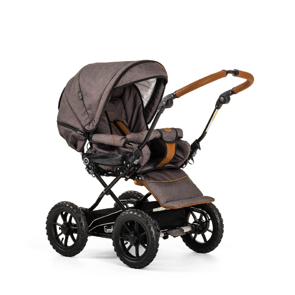 padangos/ dirbtinės odos rankenos, lengvas, sportiški ratai• Papildomai įsigyjus City Supreme arba Super Viking lopšį, vežimėlį galima naudoti ir naujagimiui• Galima