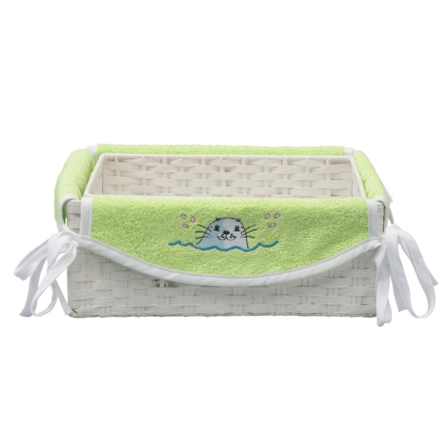 Patogus krepšelis smulkiems vaiko daiktams sudėti; į komplektą įeina du krepšeliai; viduje kilpinis užvalkaliukas.
