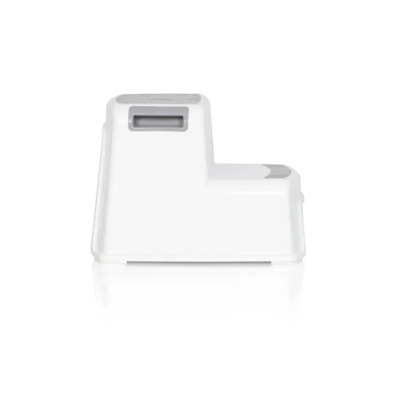 2 lygių platforma, todėl puikiai tiks ir mažesniems vaikams;STEP 2 platforma yra paprastos, minimalistinės formos, kurios dėka ji puikiai įsilies į modernaus vonios kambario dekorą;Jis platus, stabilus ir turi patogias nešiojimo rankenas;Jo viršutinis paviršius ir apatinė pakopa turi nuolat įmontuotą neslidų kilimėlį, kuris užtikrina puikų sukibimą net esant šlapiam paviršiui;Laiptelis turi plačias gumines kojeles, kad neslystų ant grindų;Jis pagamintas iš labai patvaraus plastiko, todėl yra skirtas vaikams, sveriantiems iki 30 kg.;Platformos aukštis: 27 cm. (pirmas žingsnis 14 cm.) Plotis: 32 cm.Ilgis: 36 cm.CE sertifikatas.; Svoris: 0,8 kg.