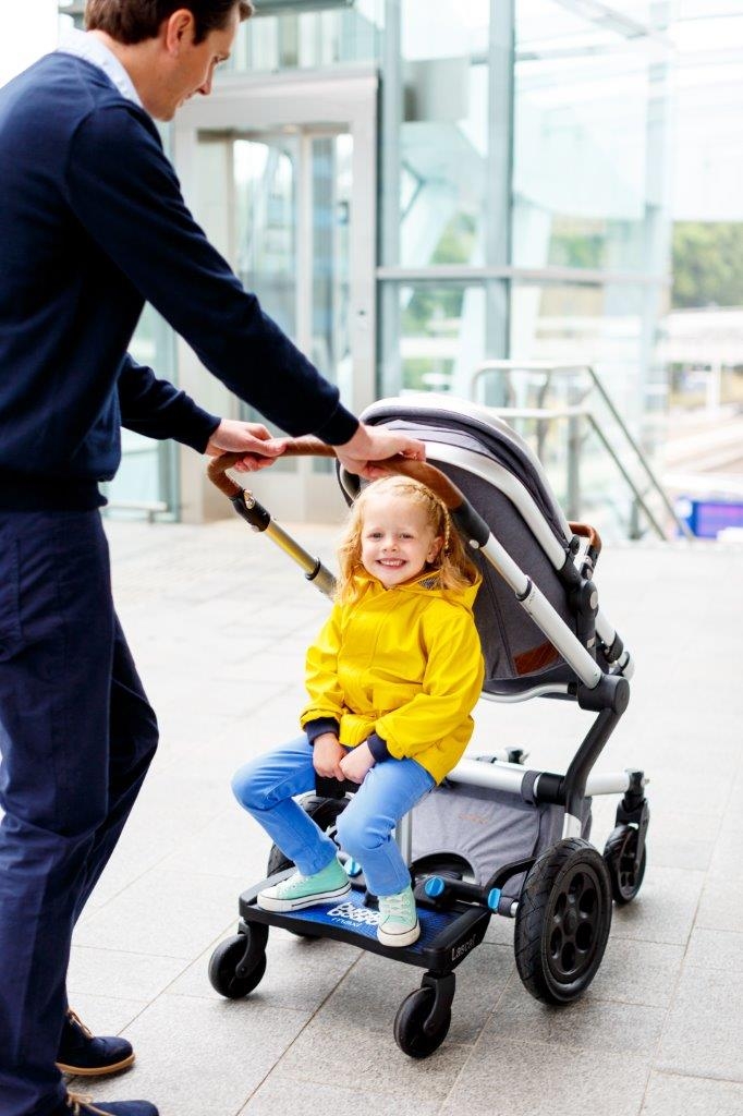 Puikiai tinka vaikams nuo 2 iki 6 metų, sveriantiems iki 22 kg. Tai išmanus, saugus bei praktiškas vežimėlio laiptelis. Pritvirtinus šį laiptelį, Jūsų vaikas atsistojęs ant jo atsiduria tarp Jūsų rankų ir tai užtikrina papildomą saugumą esant net didžiausioje minioje. Taip pat, jei Jūsų vaikas yra pavargęs, jis gali užšokti ant laiptelio ir tai užtikrins, kad Jums neteks sulėtinti savo ėjimo tempo.