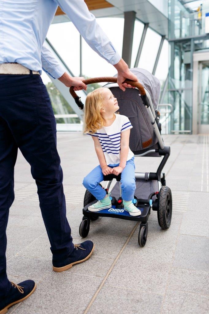 Puikiai tinka vaikams nuo 2 iki 6 metų, sveriantiems iki 22 kg. Tai išmanus, saugus bei praktiškas vežimėlio laiptelis. Pritvirtinus šį laiptelį, Jūsų vaikas atsistojęs ant jo atsiduria tarp Jūsų rankų ir tai užtikrina papildomą saugumą esant net didžiausioje minioje. Taip pat, jei Jūsų vaikas yra pavargęs, jis gali užšokti ant laiptelio ir tai užtikrins, kad Jums neteks sulėtinti savo ėjimo tempo.