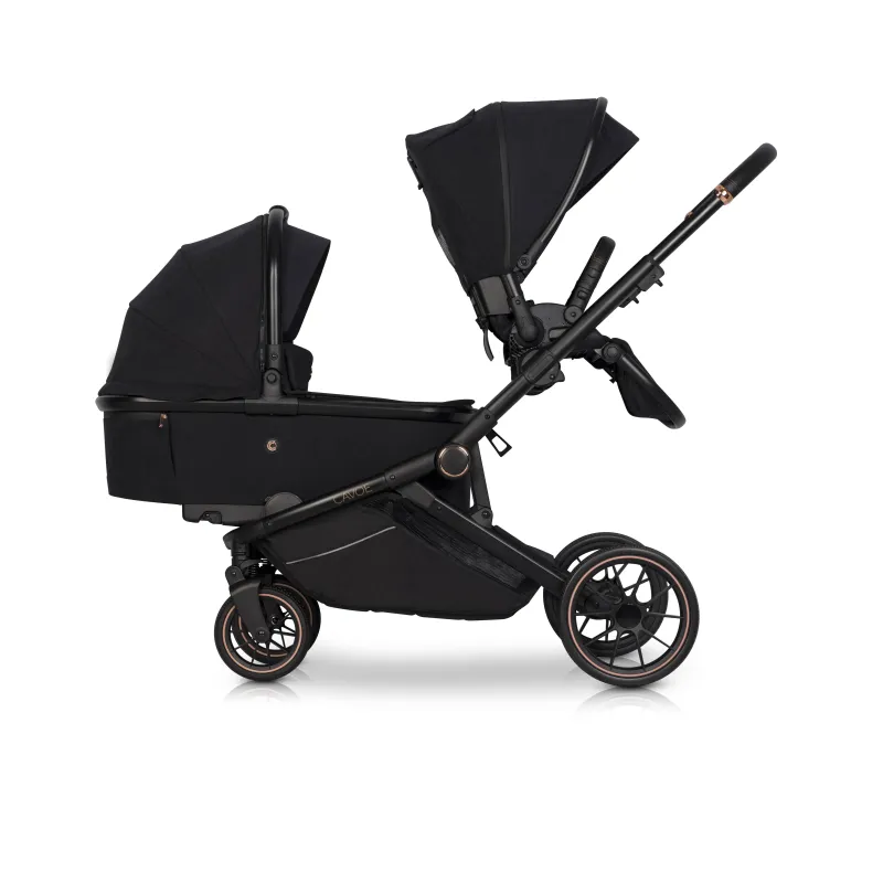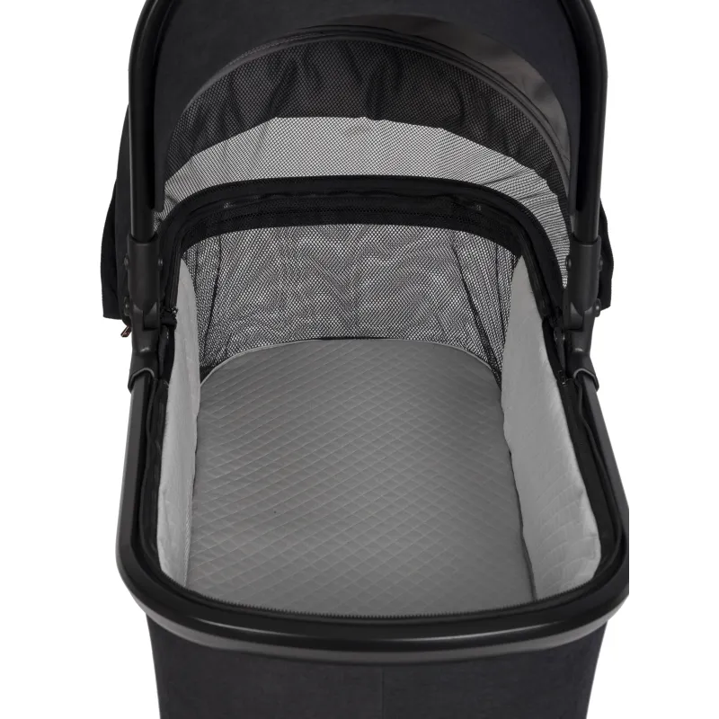 Didelis lopšiukas (vidinis ilgis 77 cm)Lopšys su atskira apsauga nuo lietaus,Ekologiška oda aptraukta nešimo rankena,Stogelis nuo saulės su papildoma nuimama dalimi,Dugne plastikinės kojelės ir ventiliacijos skydeliu.Plastikinės kojelės užsilenkia ir galima lopšio siūbavimo funkcija.