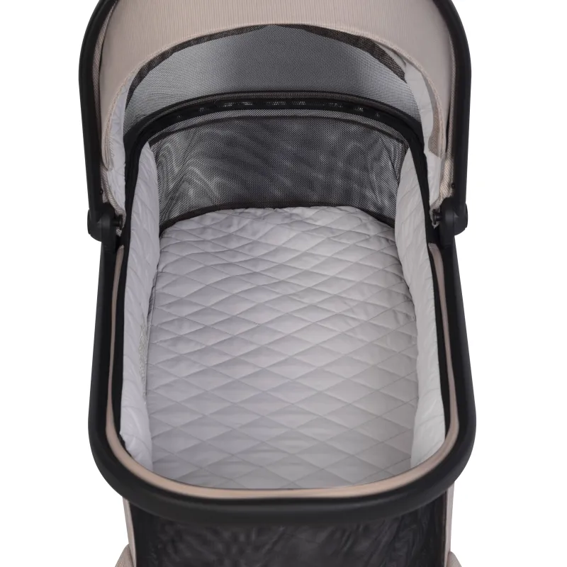 – atitikties EN 1888-1:2019 sertifikatas,- vidinis ilgis 79 cm,- uždangalas nuo lietaus,- galimybė įrengti tinklelį nuo uodų, kurie yra vežimėlio komplekto dalis,- Eko oda aptraukta nešiojimo rankena su dekoratyvinėmis siūlėmis,- stogelis nuo saulės su papildoma užtrauktuku ir ventiliacijos skydeliu,- plastikinės kojelės lopšio apačioje, leidžiančios ją pastatyti ant žemės,- didelės uždaros ventiliacijos plokštės lopšio priekyje ir gale,- galimybė sulankstyti lopšį saugojimui ar transportavimui,