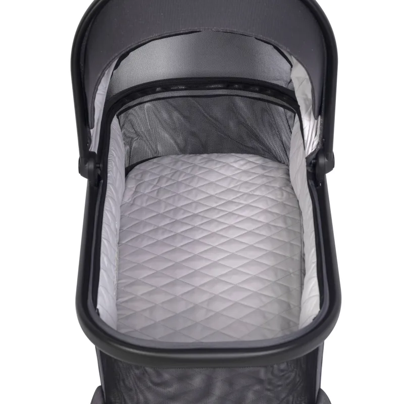 – atitikties EN 1888-1:2019 sertifikatas,- vidinis ilgis 79 cm,- uždangalas nuo lietaus,- galimybė įrengti tinklelį nuo uodų, kurie yra vežimėlio komplekto dalis,- Eko oda aptraukta nešiojimo rankena su dekoratyvinėmis siūlėmis,- stogelis nuo saulės su papildoma užtrauktuku ir ventiliacijos skydeliu,- plastikinės kojelės lopšio apačioje, leidžiančios ją pastatyti ant žemės,- didelės uždaros ventiliacijos plokštės lopšio priekyje ir gale,- galimybė sulankstyti lopšį saugojimui ar transportavimui,