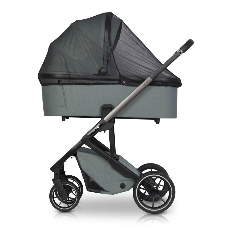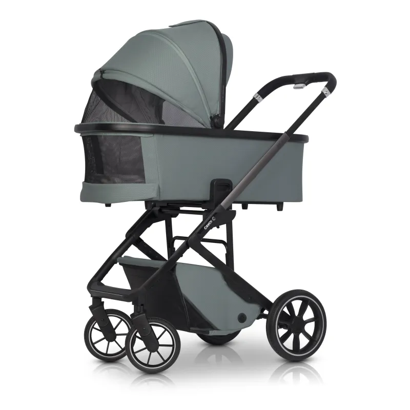 Didelis lopšiukas (vidinis ilgis 78 cm),Lopšys yra labai lengvas ir patogios formos.Lopšys nuimamas viena ranka (atminties mygtuko funkcija).Jis gali būti sulankstytas plokščiai transportavimui ar sandėliavimui. Priekinėje lopšio dalyje yra didelis uždaras ventiliacijos skyrius, Lopšys turi plastikines kojeles, kurių dėka jis nesusiteps padėtas ant žemės,Turi atskirą apsaugą nuo lietaus, tinklelį nuo uodų, nešimo rankeną, stogelį nuo saulės.