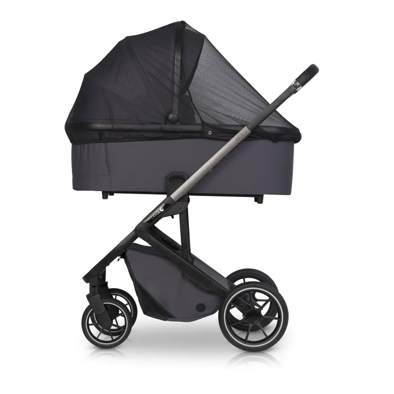 Didelis lopšiukas (vidinis ilgis 78 cm),Lopšys yra labai lengvas ir patogios formos.Jis gali būti sulankstytas plokščiai transportavimui ar sandėliavimui.Lopšys nuimamas viena ranka (atminties mygtuko funkcija). Priekinėje lopšio dalyje yra didelis uždaras ventiliacijos skyrius, Lopšys turi plastikines kojeles, kurių dėka jis nesusiteps padėtas ant žemės,Turi atskirą apsaugą nuo lietaus, tinklelį nuo uodų, nešimo rankeną, stogelį nuo saulės.