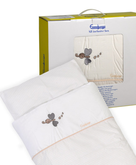 5 dalių komplektas gražiam patalėliui pakloti: antklodėlė, pagalvėlė, paklodėlė, pagalvėlės užvalkaliukas ir antklodėlės užvalkaliukas.