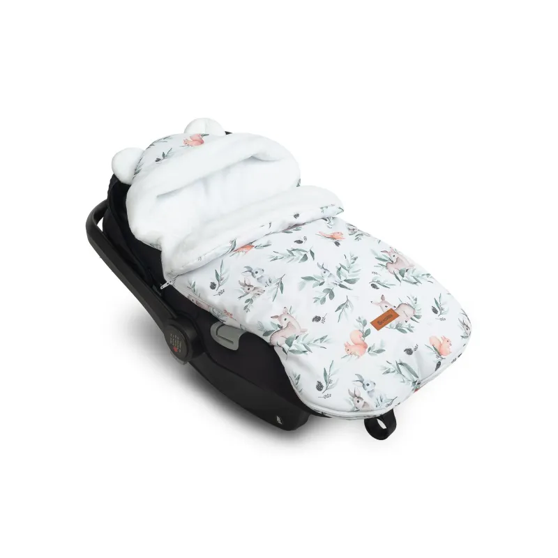 Gaubte įsiųtos ausytės ir subtilus raštas daro jį dar žaismingesnį;Aukštos kokybės viršutinis audinys yra atsparus vandeniui;Viduje yra purus neaustinis audinys, apsaugantis nuo šalčio;Vidinis sluoksnis pagabintas iš labai subtilaus ir malonaus pliušo, kuris suteikia papildomos šilumos;Turi du užtrauktukus, kurie leidžia atsegti miegmaišį iš dešinės arba kairės pusės;Taip pat užtrauktuku pagalba galėsite visiškai nuimti priekinę dalį;Vokelis turi angas 3 taškų saugos diržams;Gali būti naudojamas lopšiukuose, vežimėliuose, nešynėse, autokėdutėse ar net rogėse;Skirtas vaikams nuo 0 iki 18 mėnesių;Matmėnys: 43×80 cm.