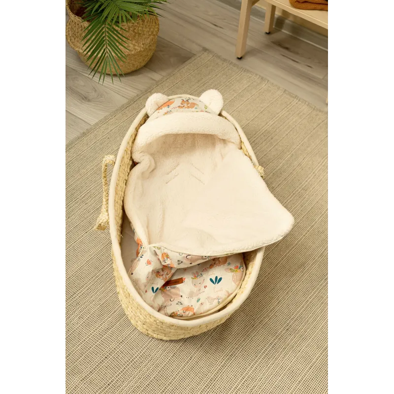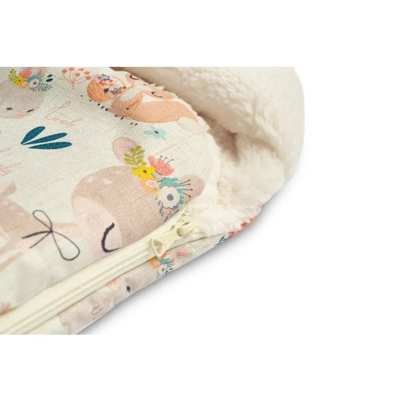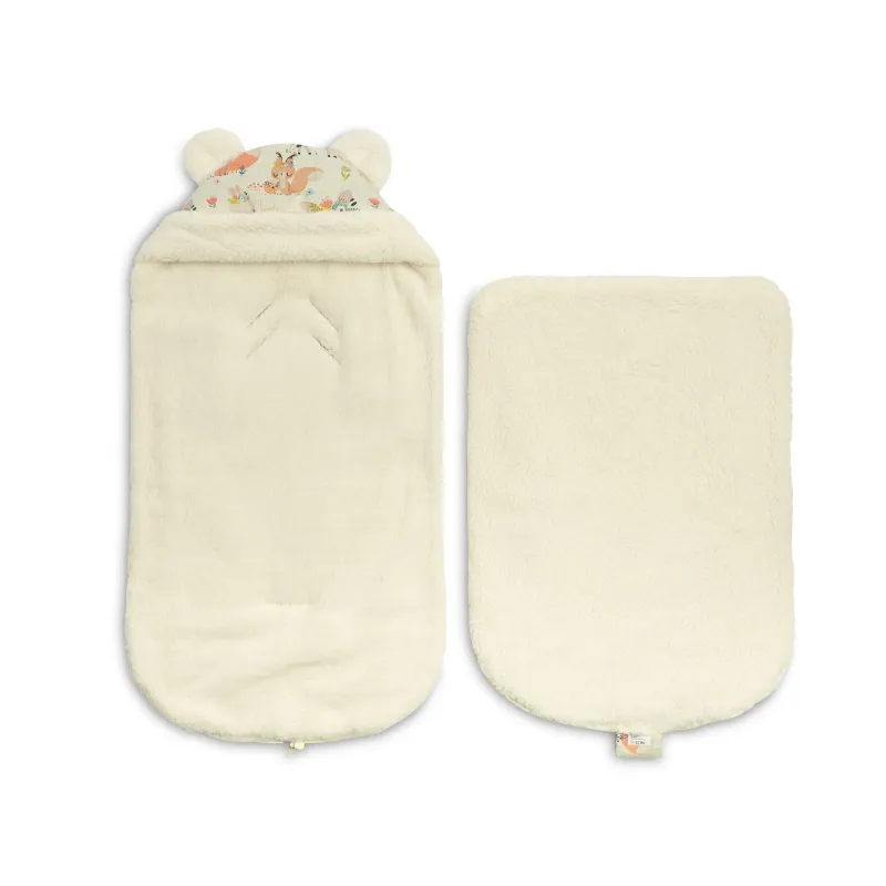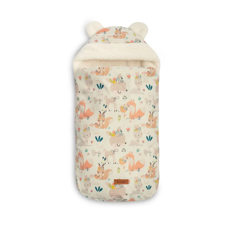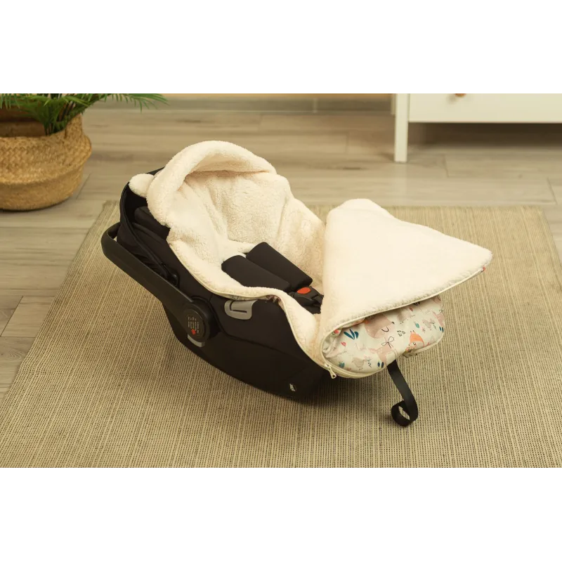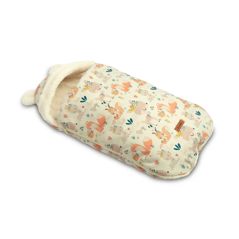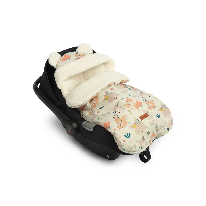 Gaubte įsiųtos ausytės ir subtilus raštas daro jį dar žaismingesnį;Aukštos kokybės viršutinis audinys yra atsparus vandeniui;Viduje yra purus neaustinis audinys, apsaugantis nuo šalčio;Vidinis sluoksnis pagabintas iš labai subtilaus ir malonaus pliušo, kuris suteikia papildomos šilumos;Turi du užtrauktukus, kurie leidžia atsegti miegmaišį iš dešinės arba kairės pusės;Taip pat užtrauktuku pagalba galėsite visiškai nuimti priekinę dalį;Vokelis turi angas 3 taškų saugos diržams;Gali būti naudojamas lopšiukuose, vežimėliuose, nešynėse, autokėdutėse ar net rogėse;Skirtas vaikams nuo 0 iki 18 mėnesių;Matmėnys: 43×80 cm.