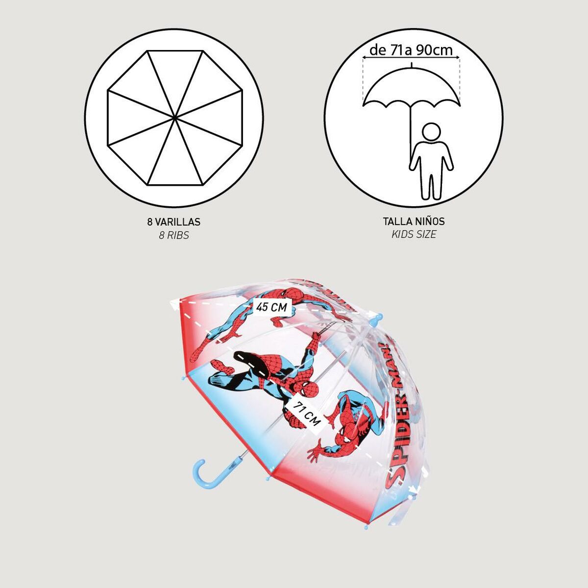 Vaikai nusipelno geriausio, dėl to pristatome jums bSkėtis Spider-Man Ø 71 cm Mėlyna Raudona PoE 45 cm/b – tai idealus pasirinkimas tiems, kurie ieško kokybiškų prekių savo mažiesiems! Gaukite bSpider-Man/b ir kitus produktus bei licencijas geriausiomis kainomis!brbrulliapytikris skersmuo: Ø 71 cm/liliLytis: Vaikiškas/liliLazdelės: 8 Lazdelės/liliTipas: Skėtis/liliAtidarymas: Rankinis/liliMedžiaga: ulliStiklo pluoštas/liliPoE/li/ul/liliSpalva: ulliMėlyna/liliRaudona/li/ul/liliApytiksliai matmenys: 45 cm/li/ul