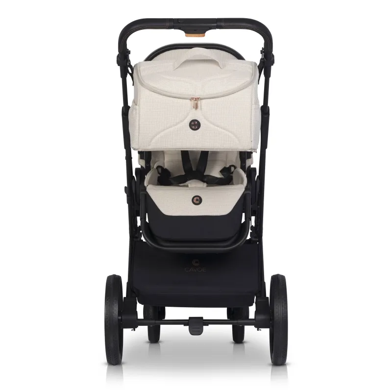 – modernus daugiafunkcis vežimėlis, skirtas vaikams nuo gimimo iki 22 kg,- atitikties EN 1888-1:2019 ir EN 1888-2:2019 sertifikatas- nuimama sėdynė (galima tvirtinti prieš ir pagal važiavimo kryptį)- galimybė sulankstyti vežimėlį kartu su sėdyne pritvirtinta priekyje ir gale pagal važiavimo kryptį- rankenos aukščio reguliavimas (teleskopinis)- teleskopinis kojų atramos ilgio reguliavimas- rankena sulankstytam vežimėliui nešti- dideli ratai su rutuliniais guoliais ir guminėmis padangomis (puikus sukibimas ir ant sniego)- vežimėlio sėdynė su 5 taškų saugos diržais, tinkanti iki 22 kg – apsauginis barjeras ir kreiptuvas aptrauktas ekologiška oda- apsauga nuo lietaus, dengianti visą vežimėlio apmušalą- žieminis miegmaišis su nuimamu priekiniu užvalkalu- stogelis su papildoma nuimama dalimi ir ventiliacinėmis plokštėmis (stogelis gali būti nuleistas ir apsaugoti vaiką nuo žemos saulės)- savaime besireguliuojantys priekiniai ratai su galimybe užsiblokuoti važiuojant tiesiai- sulankstymo viena ranka sistema,- pirkinių krepšelis po vežimėliu (lengva prieiga prie krepšelio dėl atvarto gale),- atspindintis elementas ant krepšelio (geresnis matomumas ir saugumas)- galimybė įsigyti krepšį su pritvirtinimo prie vežimėlio sistema ir dirželiu per petį (krepšys, visiškai atidarius užtrauktukus, veikia kaip kūdikio pervystymo kilimėlis) (į kpmplektą neįeina)- galimybė įsigyti adapterius CAVOE 0+ automobilinei kėdutei ir kitų markių 0+ grupės automobilinėms kėdutėms (išsamų kėdžių sąrašą rasite iš pardavėjų) (į komplektą neįeina)