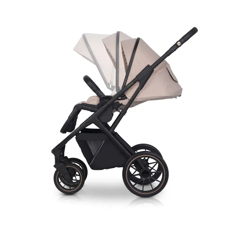– modernus daugiafunkcis vežimėlis, skirtas vaikams nuo gimimo iki 22 kg,- atitikties EN 1888-1:2019 ir EN 1888-2:2019 sertifikatas- nuimama sėdynė (galima tvirtinti prieš ir pagal važiavimo kryptį)- galimybė sulankstyti vežimėlį kartu su sėdyne pritvirtinta priekyje ir gale pagal važiavimo kryptį- rankenos aukščio reguliavimas (teleskopinis)- teleskopinis kojų atramos ilgio reguliavimas- rankena sulankstytam vežimėliui nešti- dideli ratai su rutuliniais guoliais ir guminėmis padangomis (puikus sukibimas ir ant sniego)- vežimėlio sėdynė su 5 taškų saugos diržais, tinkanti iki 22 kg – apsauginis barjeras ir kreiptuvas aptrauktas ekologiška oda- apsauga nuo lietaus, dengianti visą vežimėlio apmušalą- žieminis miegmaišis su nuimamu priekiniu užvalkalu- stogelis su papildoma nuimama dalimi ir ventiliacinėmis plokštėmis (stogelis gali būti nuleistas ir apsaugoti vaiką nuo žemos saulės)- savaime besireguliuojantys priekiniai ratai su galimybe užsiblokuoti važiuojant tiesiai- sulankstymo viena ranka sistema,- pirkinių krepšelis po vežimėliu (lengva prieiga prie krepšelio dėl atvarto gale),- atspindintis elementas ant krepšelio (geresnis matomumas ir saugumas)- galimybė įsigyti krepšį su pritvirtinimo prie vežimėlio sistema ir dirželiu per petį (krepšys, visiškai atidarius užtrauktukus, veikia kaip kūdikio pervystymo kilimėlis) (į kpmplektą neįeina)- galimybė įsigyti adapterius CAVOE 0+ automobilinei kėdutei ir kitų markių 0+ grupės automobilinėms kėdutėms (išsamų kėdžių sąrašą rasite iš pardavėjų) (į komplektą neįeina)