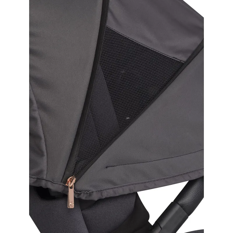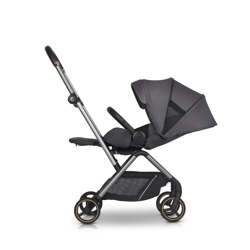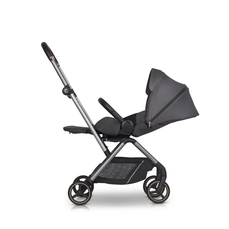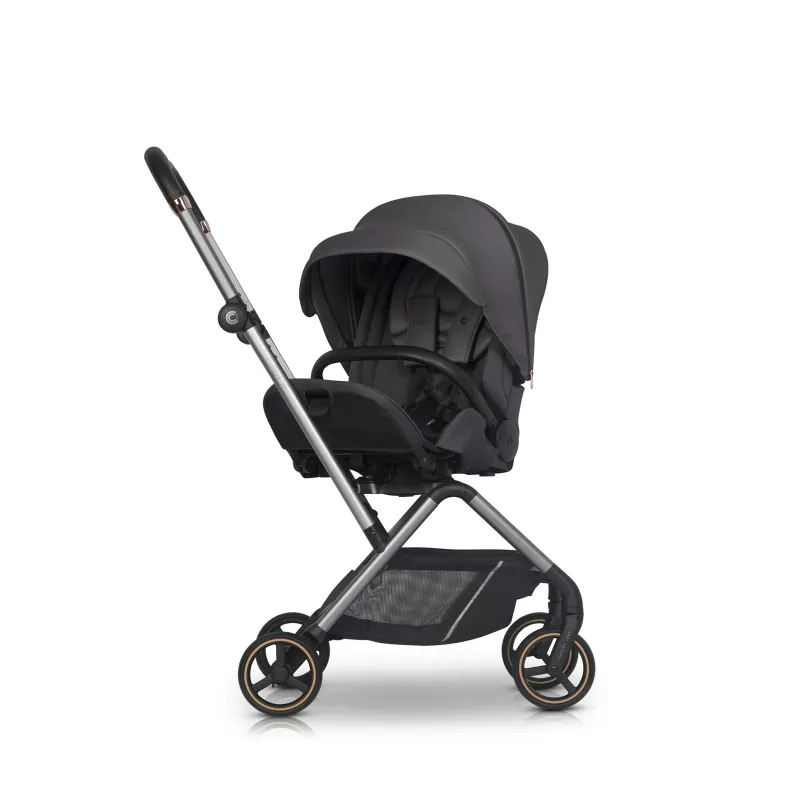 Modernus daugiafunkcis vežimėlis skirtas vaikams iki 22 kg.;Besisukanti sėdynė 360 laipsnių;Stogelio reguliavimas , vežimėlis auga kartu su vaiku;Visi audiniai turi UV50+ apsaugo nuo saulės filtrą;Prailginamas stogelis nuo saulės ar vėjo;Stogelio šonuose yra tinkleliai, vežimėlio ventiliacijai;Atitikties EN 1888-1: 2018 ir EN 1888-2: 2018 sertifikatas;Apsauga nuo atsitiktinio sulankstymo ar išlankstymo;Eko odos reguliuojamo aukščio rankena;Kojų atramos reguliavimas;Priekiniai ir galiniai ratai su amortizacija;5 taškų saugos diržai;Buomelis ir stumimo rankena aptraukti ekologiška oda;Funkcija leidžianti vežimėli tempti kaip lagaminą;Transportavimo krepšys;Tinklelis nuo vabzdžių;Kojų uždangalas;Apsauga nuo lietaus;Pirkinių krepšelis po vežimėliu (lengva prieiga prie krepšelio dėl atvarto gale);Praktiška kišenėlė atlošo gale;Sulankstymo sistema viena ranka;Papildoma vaiko pagalvėlė.
