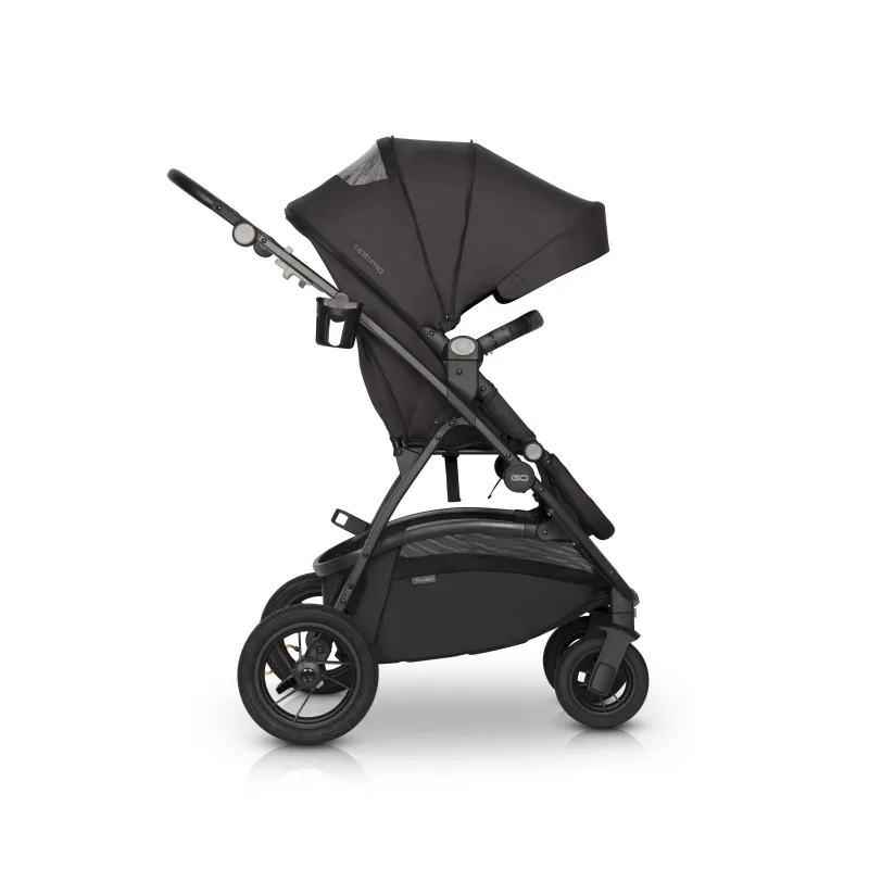 Skirtas vaikams iki 22 kilogramų;4 pripučiami ratai;Tvirto aliuminio, juodos spalvos važiuoklė;360 laipsnių pasukami priekiniai ratukai, todėl labai patogu manevruoti;Važiuojant nelygiu keliu priekinius ratukus galima užfiksuoti važiavimui tiesiai;Kompaktiškai sulankstomas rėmas užima labai nedaug vietos;Rėmas lankstosi kartu su sportine dalimi, kada sportinukas nusuktas į kelią;Galimybė montuoti sportinuką į abi puses;4 pozicijomis reguliuojama naugarėlės padėtisTuri gulimą padėtį;Šiltas kojų užklotukas;Reguliuojamas pakojuko aukštis;Reguliuojamas eko odos rankenos aukštis;Lengvai nuimamas ir uždedamas eko odos buomelis;Užtrauktuko pagalba, stogelis prasiilgina, tokiu būdu apsaugo nuo saulės ir vėjo, viduryje integruotas tinklelis;Atidaromas langelis, kad tėvai galėtų matyti vaiką;Paminkštinti 5 taškų saugos diržai;Gertuvės laikiklis;Komplektacijoje yra apsaugėlė nuo lietaus;Atitinka Europos Sąjungos standartą EN 1888;