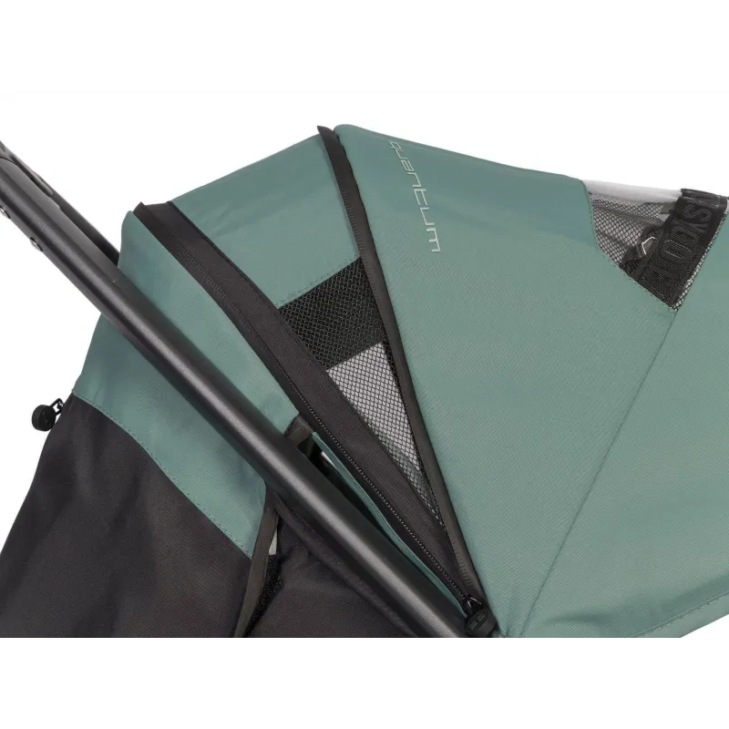 Skirtas vaikams iki 22 kilogramų;4 pripučiami ratai;Tvirto aliuminio, juodos spalvos važiuoklė;360 laipsnių pasukami priekiniai ratukai, todėl labai patogu manevruoti;Važiuojant nelygiu keliu priekinius ratukus galima užfiksuoti važiavimui tiesiai;Kompaktiškai sulankstomas rėmas užima labai nedaug vietos;Rėmas lankstosi kartu su sportine dalimi, kada sportinukas nusuktas į kelią;Sportinuko nugarinėje dalyje yra kišenėlė susidėti smulkiems daiktams;4 pozicijomis reguliuojama naugarėlės padėtisTuri gulimą padėtį;Šiltas kojų užklotukas;Reguliuojamas pakojuko aukštis;Lengvai nuimamas ir uždedamas eko odos buomelis;Užtrauktuko pagalba, stogelis prasiilgina, tokiu būdu apsaugo nuo saulės ir vėjo, viduryje integruotas tinklelis;Atidaromas langelis, kad tėvai galėtų matyti vaiką;Paminkštinti 5 taškų saugos diržai;Komplektacijoje yra apsaugėlė nuo lietaus;Atitinka Europos Sąjungos standartą EN 1888;