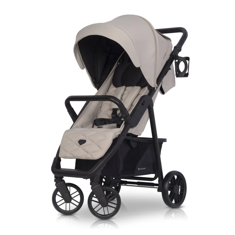 Modernaus dizaino vežimėlis vaikams nuo gimimo iki 22 kg (0+)Rankenos aukščio reguliavimas.Itin lengvas aliuminio rėmas.Dideli ratai su guoliais ir amortizacija.Reguliuojamo aukščio apsaugos diržų petnešėlės.Stogelis nuo saulės su papildoma sekcija.Vežimėlio rankena padengta neslystančia TPR medžiaga.Neslystantis buomelis, padengtas TPR medžiaga.Galimybė sulankstyti vežimėlį su sėdyne ir buomeliu.Laipsniškas atlošo reguliavimas, pilnai gulima padėtis.Laipsniškas kojų atramos reguliavimas.Ventiliacija kabinos gale.Pasukama priekinių ratų sistema su užrakto galimybe važiuoti tiesiai.Automatinė sulankstyto vežimėlio blokada (palengvina nešiojimą)Langas kabinoje.Talpus pirkinių krepšelis.Praktiška kišenė kabinos gale.Pagamintas pagal Europos standartą.Padangos pagamintos iš poliuretano ir su sriegiu. Poliuretanas yra atsparesnis dėvėjimuisi, palyginti su EVA.
