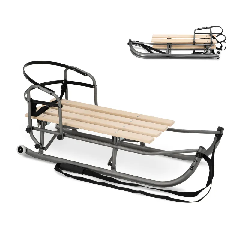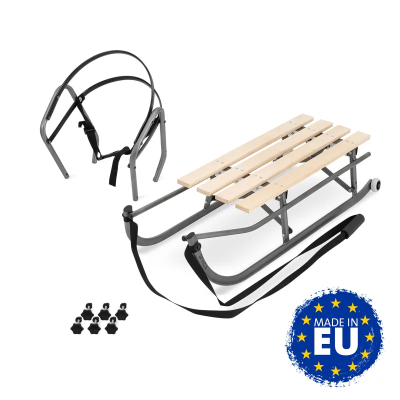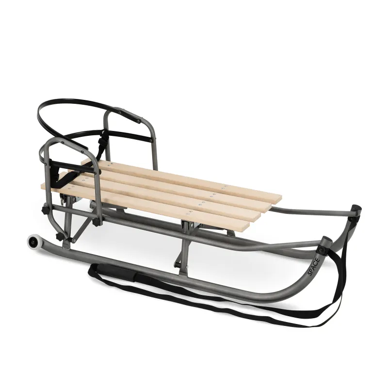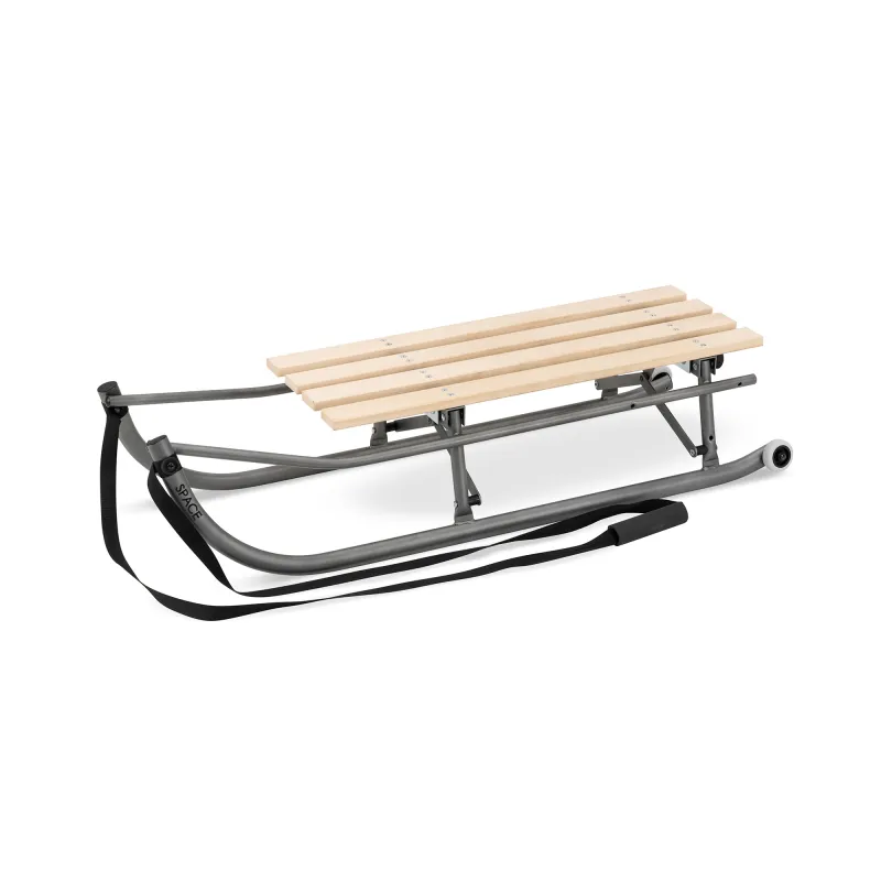 Ratukai galinėje dalyje, tad vietomis kur nėra sniego galėsite pravažiuoti ant ratukų;