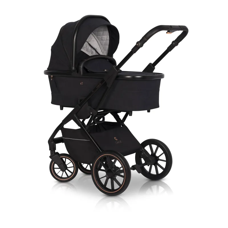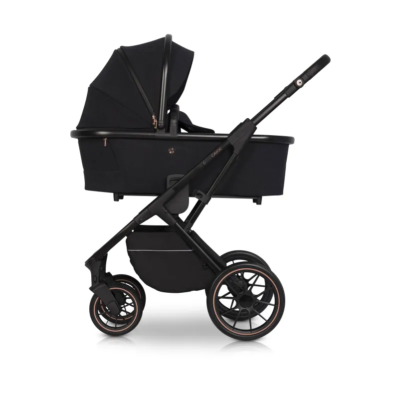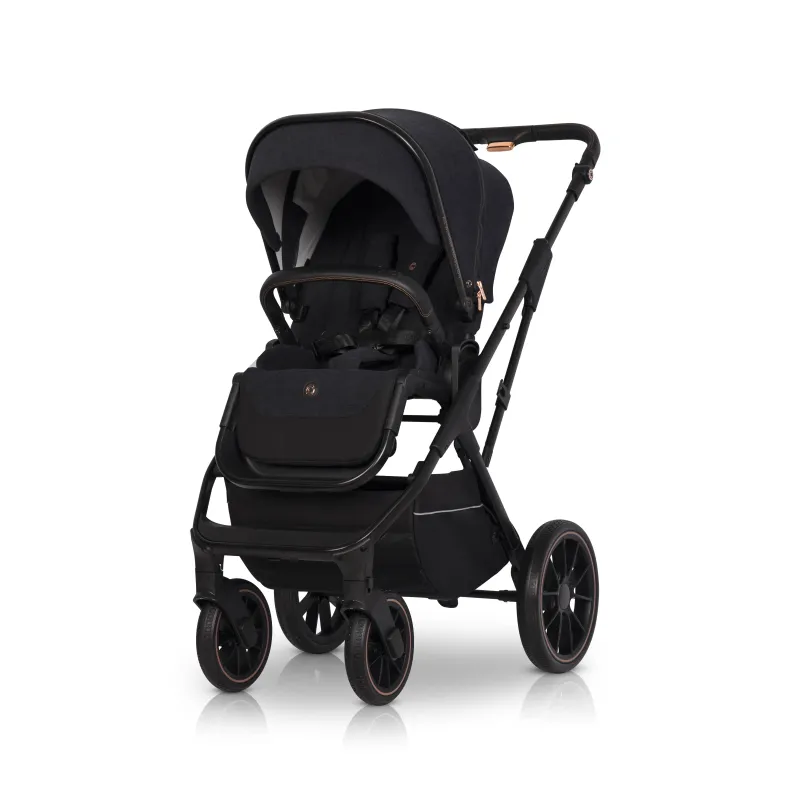 Modernus daugiafunkcis vežimėlis, skirtas vaikams iki 22 kg,EN 1888-1-2: 2019-02 standarto atitikties sertifikatasNuimama sėdynė (galima montuoti į priekį ir atgal)Galimybė sulankstyti vežimėlį, kai sėdynė sumontuota į priekį ir atgal,Teleskopinis kojų atramos ilgio reguliavimas,Sėdimoji dalis su 5 taškų saugos diržais, pritaikyta vaikams nuo gimimo iki 22 kg (0+ sėdynė)Buomelis ir rankena aptrauktos ekologiška oda,Pilnas uždangalas nuo lietaus, dengiantis visą vežimėlio apmušaląNovatoriškas miegmaišis „trys viename“ (3 funkcijos: miegmaišis, kojų šildytuvas, čiužinys)Prasiilginantis stogelis, kuris apsaugos nuo saulės ar vėjo,Rankenos aukščio reguliavimas (gidas),Rankena sulankstytam vežimėliui nešti,Dideli ratai su guoliais ir guminėmis padangomis (puikus sukibimas ir ant sniego)Galimybė užfiksuoti priekinius ratus tiesiam važiavimui,Sulankstymo sistema viena ranka,Pirkinių krepšelis po vežimėliu (lengva prieiga prie krepšelio dėl atvarto gale),Atspindintis elementas ant krepšelio (geresnis matomumas ir saugumas)