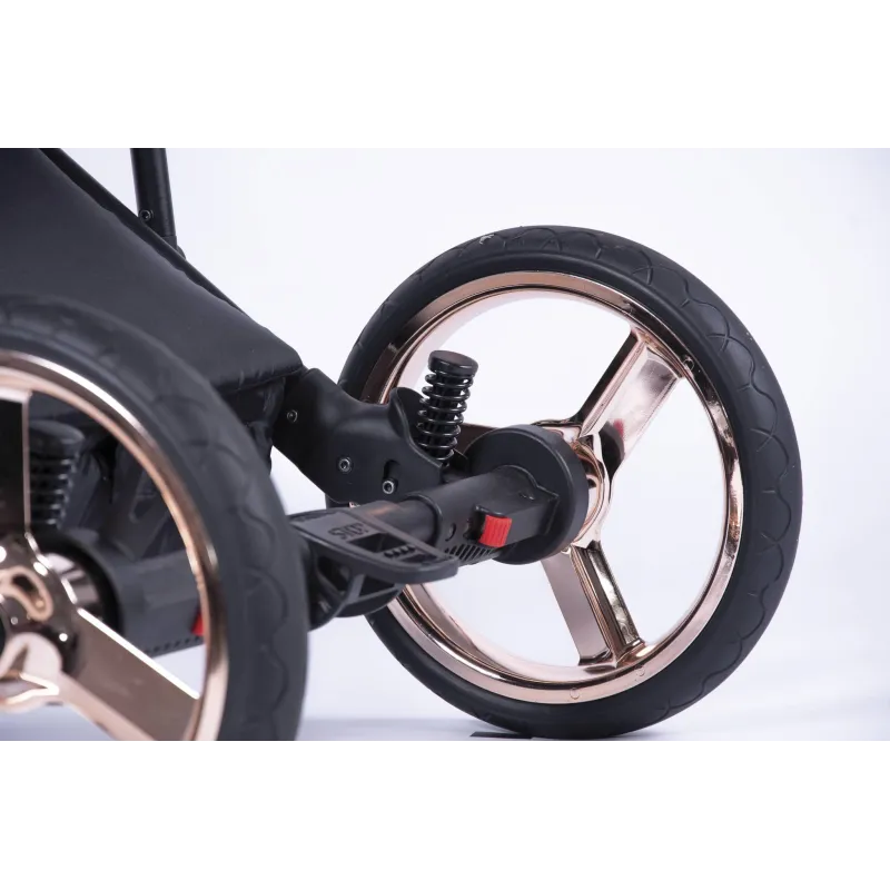 Ypač lengvo, bei tvirto aliuminio;Saugi sulankstymo sistema, sulanksčius vežimėlis neturi atvirų ertmių;Sulankstomas paprastai ir greitai;Susilankstęs užima nedaug vietos;Patogus nešti;Patikimas vieno paspaudimo centrinis stabdis užtikrina aukščiausio lygio saugumą, bei paprastą naudojimą;Netgi 6 amortizatorių sistema užtinkrins komfortiška važiavimą bet kokiu keliu;Lengvai nuimami ir uždedami ratukai;Manevringi priekiniai ratukai, galimybė juos užfiksuoti važiavimui tiesiai;Reguliuojamo kietumo galiniai amortizatoriai;Reguliuojamo aukščio rankena aptraukta eko oda;Tvirtinamas gertuvės laikiklis, kuris įskaičiuotas komplekte;Didelis pirkinių krepšys;