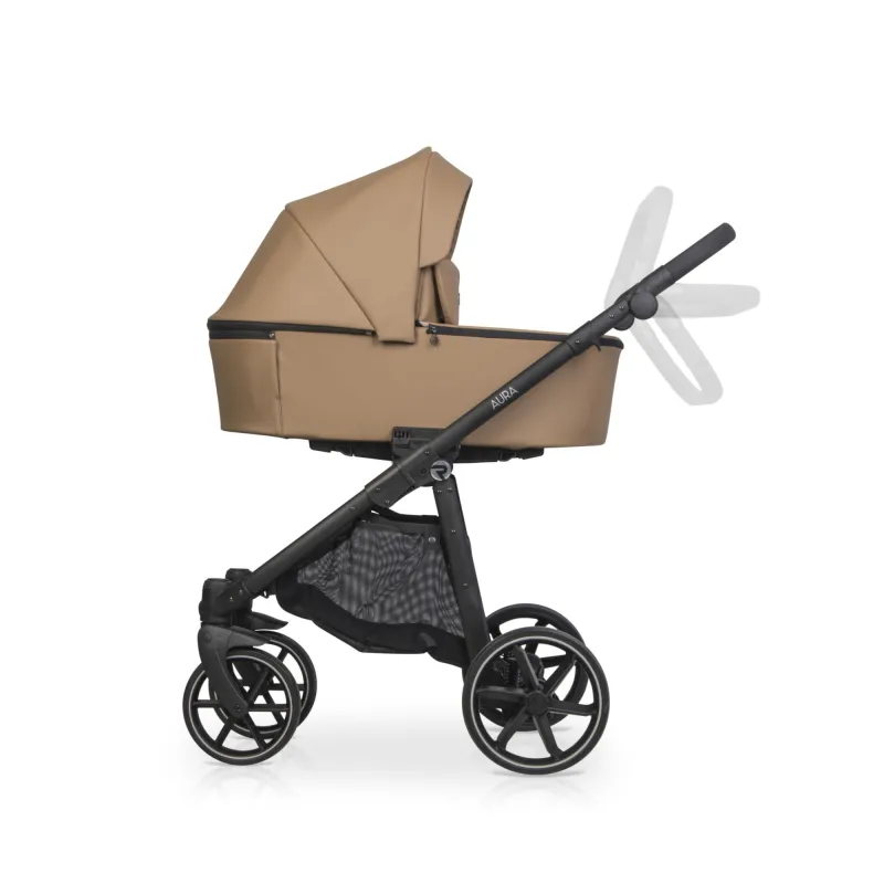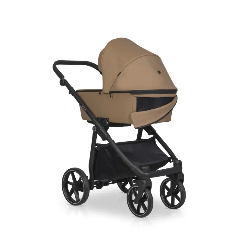 Vežimėlis pasižymi itin gera amortizacija, bet tuo pačiu nėra masyvus ir sulankstytas užima mažai vietos;Turi labai didelį lopšį ir yra visas iš eko odos;