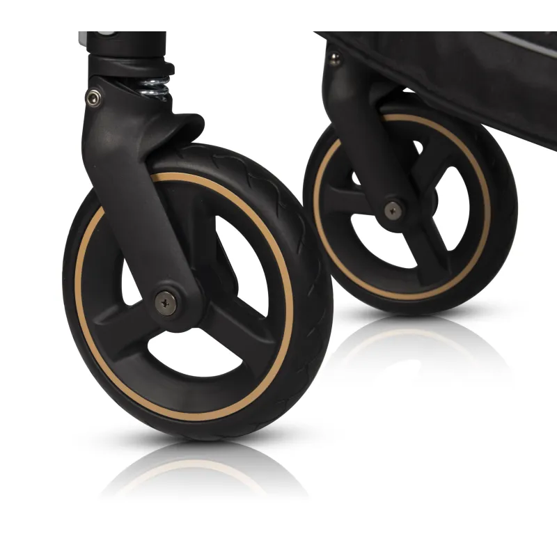 modernus daugiafunkcis vežimėlis skirtas vaikams nuo gimimo iki 22 kg,atitikties EN 1888-1:2018 ir EN 1888-2:2018 sertifikatas,nuimama sėdynė (galima tvirtinti priekyje ir gale pagal važiavimo kryptį),galimybė sulankstyti vežimėlį kartu su sėdyne, pritvirtinta priekyje ir gale, pagal važiavimo kryptį,lengvi ratai su poliuretaninėmis padangomis (labai atsparūs trinčiai ir temperatūros pokyčiams),sėdimoji dalis su 5 taškų saugos diržais,apsauginis barjeras ir rankena apdailintas ekologiška oda,komplekte su sėdyne yra apsauga nuo lietaus ir užvalkalas kojoms,stogelis su papildoma neužsegama dalimi (stogelis gali būti pakreiptas ir apsaugo vaiką nuo saulės),patogi minkšta sėdynė,savaime besireguliuojantys priekiniai ratai su galimybe užsiblokuoti važiuojant tiesiai,teleskopinis rankenos aukščio reguliavimas (ne tik pailgina rankeną, bet ir padidina atstumą iki vežimėlio, o tai svarbu aukštiems tėvams)pirkinių krepšelis po vežimėliu,