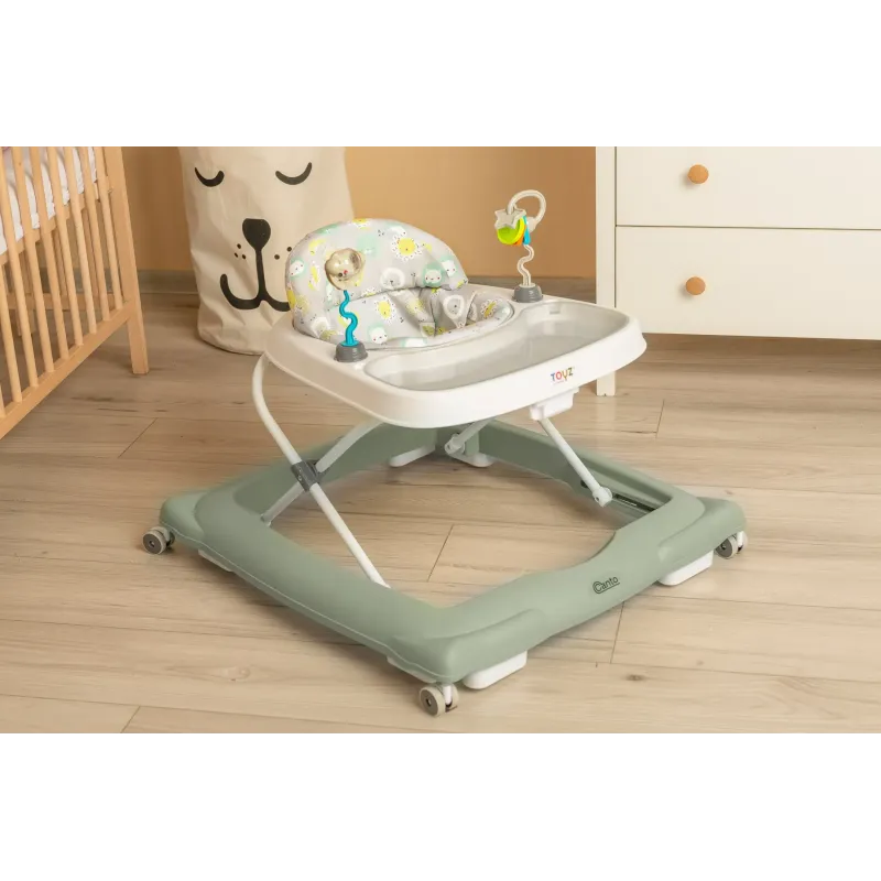 Skirta vaikams nuo 6 mėnesių iki 12 kilogramų;Visi 4 ratukai sukasi 360 laipsnių;Visi 4 ratukai dengti guma, užtikrina tylų važiavimą ir apsaugo grindis nuo susibraižymo;Kruopščiai suprojektuota konstrukcija užtikrina judėjimo laisvę;Dėl patogaus ir standaus atlošo mažylis vaikštynėje jausis patogiai;Vieno mygtuko pagalbą lengvai sureguliuosite vaikštynės aukštį, kad būtų tinkamas kontaktas su žeme;Spalvingas skydelis patrauks kiekvieno vaiko dėmesį;Galimybė sulankstyti;Pasukami visi ratukai palengvina manevravimą;Guminės atramos, neleidžiančios patekti į nelygų reljefą arba nukristi nuo aukšto slenksčio;Tvirta konstrukcija ir kokybiškos medžiagos užtikrina ilgaamžiškumą;