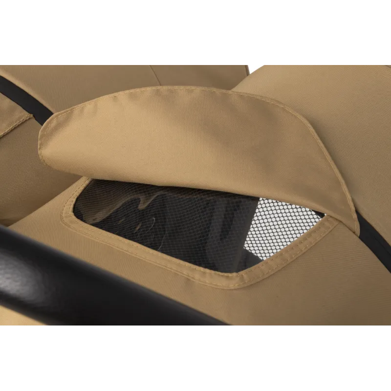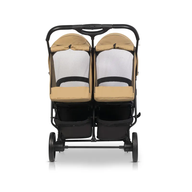 Visi audiniai turi UV50+ saulės apsaugos filtrą;Aliuminio rėmas; Paprastas sulankstymo ir išlankstymo mechanizmas;Nepriklausomai vienas nuo kito reguliuojami nugarėlių atlošai – 5 pozicijos. Viena iš jų gulima padėtis;Paminkštinto gelio ratukai; Priekiniai ratukai sukasi aplink savo ašį arba gali būti fiksuojami; Prailginami stogeliai, apsauga nuo saulės ir vėjo;Patogios kišenelės įsiųtos stogeliuose; 5 taškų paminkštinti saugos diržai; Šiltas užklotas kojytėms – 2 vienetai;Apsauga nuo lietaus;Nuimami buomeliai; Stogeliuose yra langeliai, galite stebėti vaikelius; 2 atskiri, dideli pirkinių krepšiai;Vežimėlio plotis yra 72 cm, o tai reiškia, kad jis lengvai tilps pro dauguma durų. Produktas pagamintas pagal Europos saugumo standartą EN 1888-1 i EN1888-2:2018;Skirtas vaikams iki 22 kilogramų svorio;