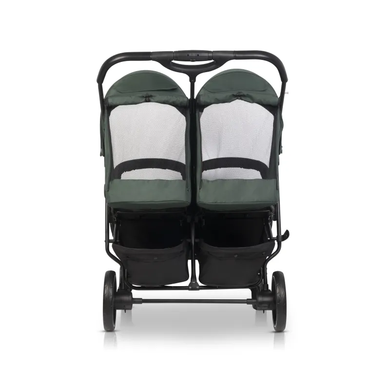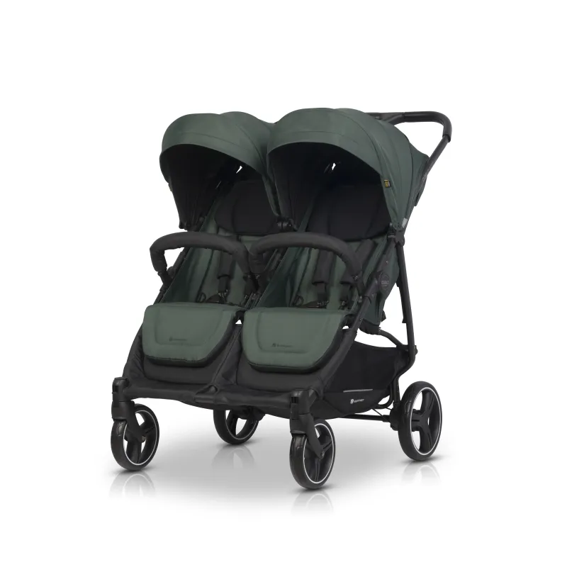 Visi audiniai turi UV50+ saulės apsaugos filtrą;Aliuminio rėmas; Paprastas sulankstymo ir išlankstymo mechanizmas;Nepriklausomai vienas nuo kito reguliuojami nugarėlių atlošai – 5 pozicijos. Viena iš jų gulima padėtis;Paminkštinto gelio ratukai; Priekiniai ratukai sukasi aplink savo ašį arba gali būti fiksuojami; Prailginami stogeliai, apsauga nuo saulės ir vėjo;Patogios kišenelės įsiųtos stogeliuose; 5 taškų paminkštinti saugos diržai; Šiltas užklotas kojytėms – 2 vienetai;Apsauga nuo lietaus;Nuimami buomeliai; Stogeliuose yra langeliai, galite stebėti vaikelius; 2 atskiri, dideli pirkinių krepšiai;Vežimėlio plotis yra 72 cm, o tai reiškia, kad jis lengvai tilps pro dauguma durų.Produktas pagamintas pagal Europos saugumo standartą EN 1888-1 i EN1888-2:2018;Skirtas vaikams iki 22 kilogramų svorio;