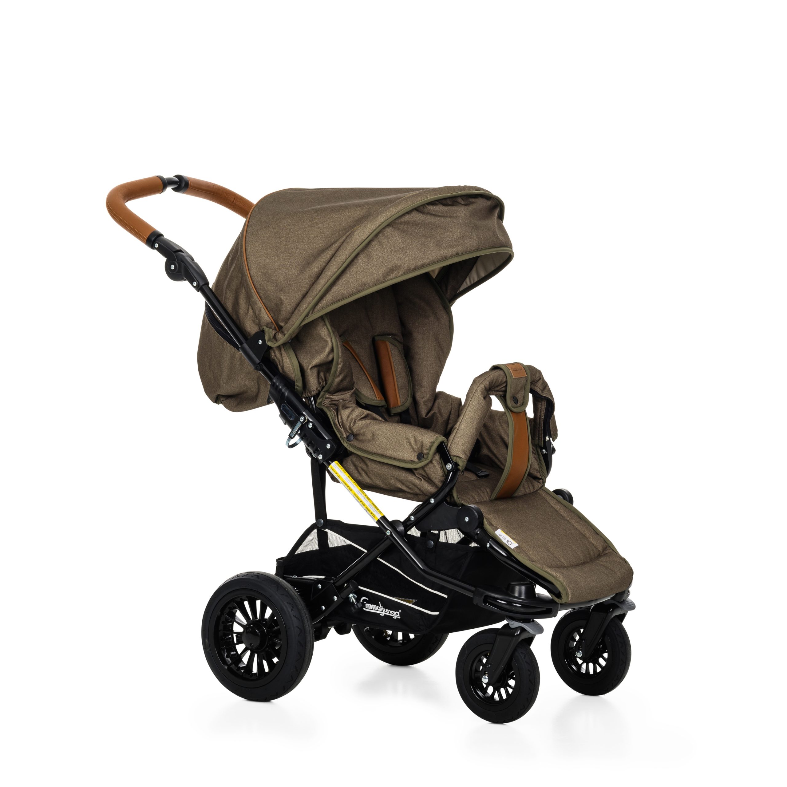 Fiksuoti pripučiamieji „Scooter AIR“ ratai užtikrina puikų pravažumą per smėlį ir sniegą, su jais vežimėlis smagiai rieda bet kokiu paviršiumi.