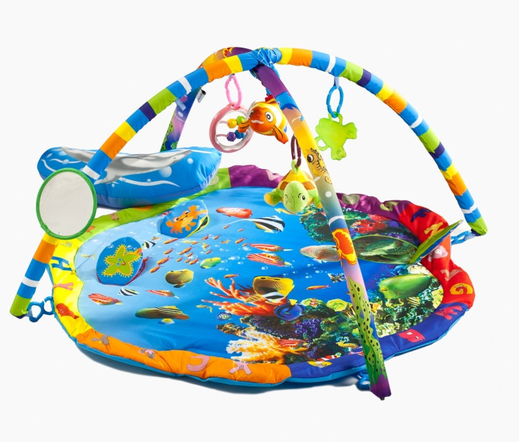 “Britton” lavinamasis kilimėlis “Ocean World” tinka vaikams nuo gimimo. Tarsi tikras vandenyno vaizdas suteiks mažyliui vandenyno džiaugsmą. Patiesalo išorinėje pusėje yra 26 įdomios gyvūnėlių pavidalo raidės; spalvingas kramtukas; linksmų spalvų barškutis; vibruojanti minkšta žuvis su kramtuku vietoje uodegos; o jos permatomame pilve – spalvoti žirniukai; kilputės vaiko mėgstamiems žaislams sukabinti.